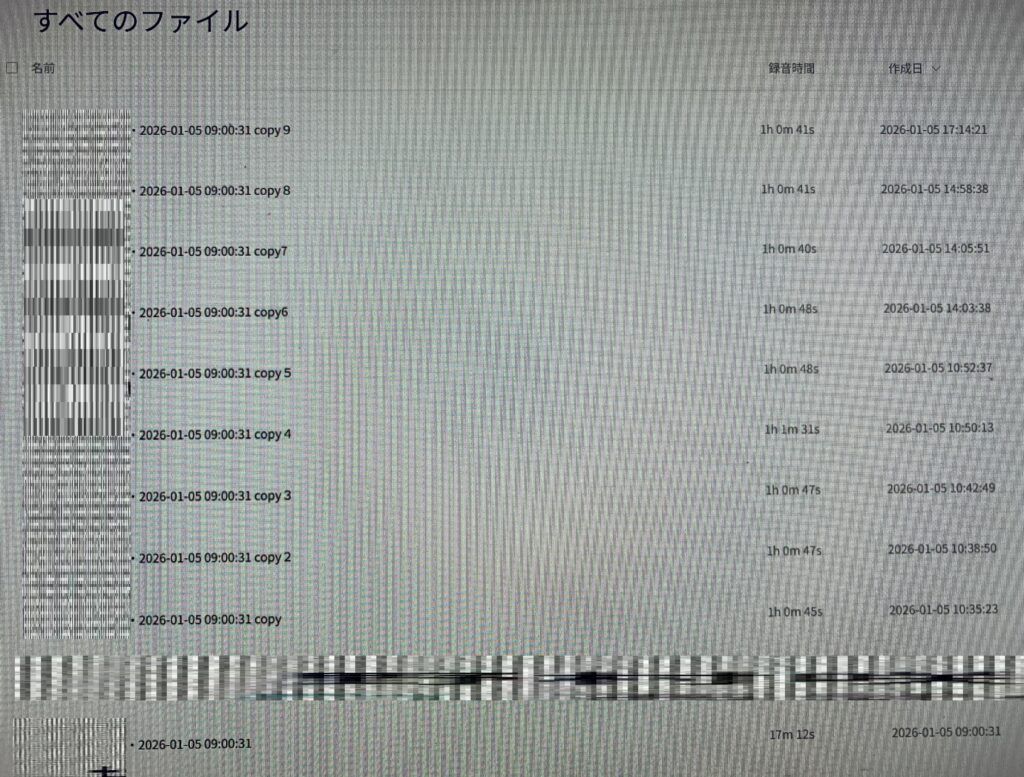 一番 下の 17分12秒のオリジナルの録音なのに、上の9回のコピーのように1時間以上の保存になり しかも、中身は空白なのであります