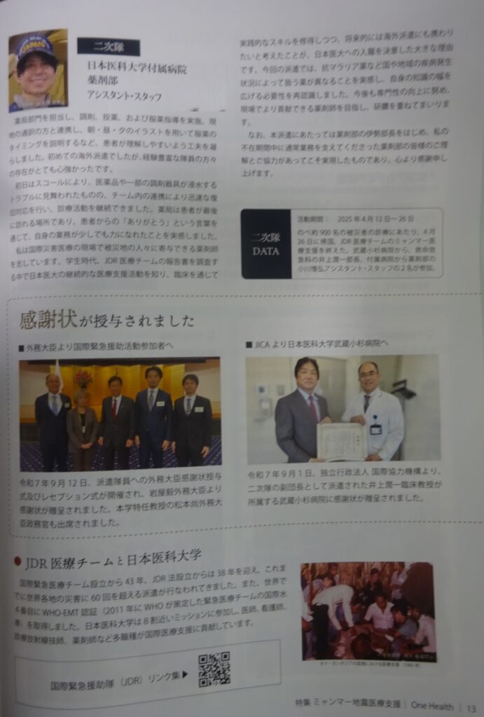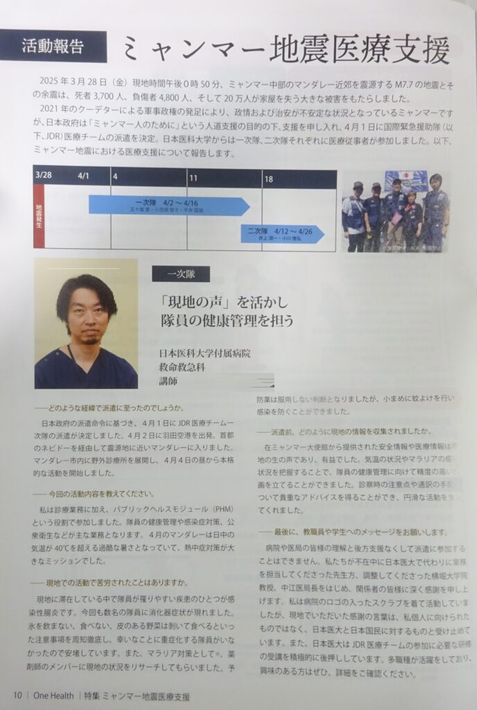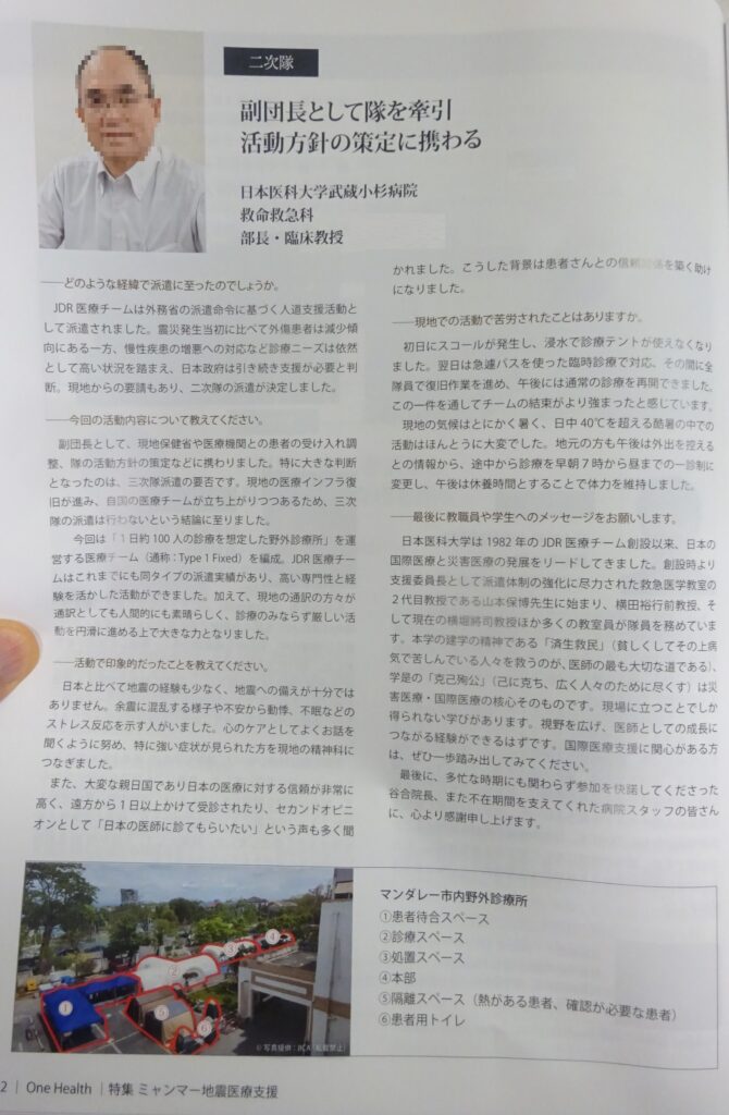広報誌(ミャンマー地震医療支援)
