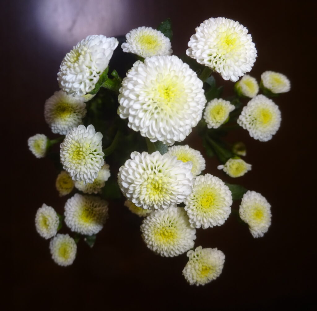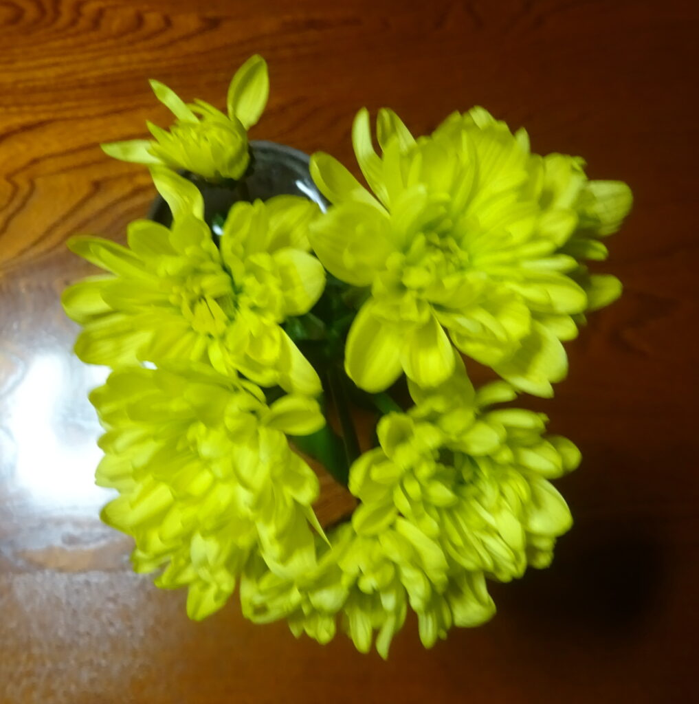 『(前略)去る(一昨年の)9月9日(水)の【菊の節句】のブログ の上段に、 【(前略)菊の花は 仏花の定番であり、いつも和菊を選びます。(後略)】と記させて頂きました。本日は 一日ですので、仏花を新しくしました。(中略) 因みに、去る(一昨年の)9月16日(水)の【菊の花】のブログ、そして、去る(一昨年の)9月13日(日)の【和菊】のブログにも、和菊の写真を添付させて頂きました。この去る(一昨年の)9月16日(水)の【菊の花】のブログの上段に、花器に差した切り花を長持ちさせるための方法を記させて頂きました。(後略)』と記させて頂きました。そして、去る(一昨年の)10月15日(木)の『仏花』のブログ の上段 と 去る(一昨年の)10月23日(金)の『レクイエム』のブログ の中段に、 『(前略)上記のように 一日に 仏花を新しくしましたが、また 交換致しました。(中略)なお、今頃の季節、仏花は持っても約10日間 位で 御座いますね。勿論、お供え物は毎日交換しています。(後略)』と記させて頂きました。やはり今頃の季節、仏花は持っても約10日間位で 御座いますね。(後略)」と記させて頂きました。因みに、同様に、今月は、本日 つまり 12月1日に 菊の花を交換致しました。なお、本日 すなわち 12月1日(月) の「榊・92」のブログの中段やや下に、