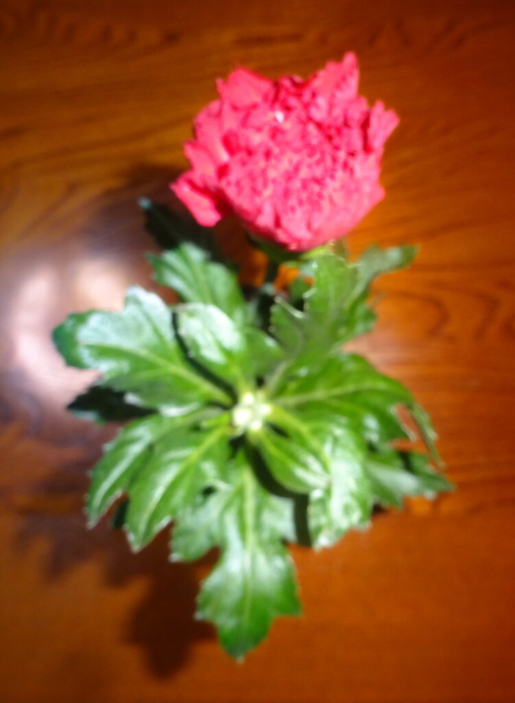 仏花(家政婦さんによりますと、赤いカーネーションの花びらが 落ちているとのことでありました。それで、蕾の内に 買って来ているのだが と答えました)