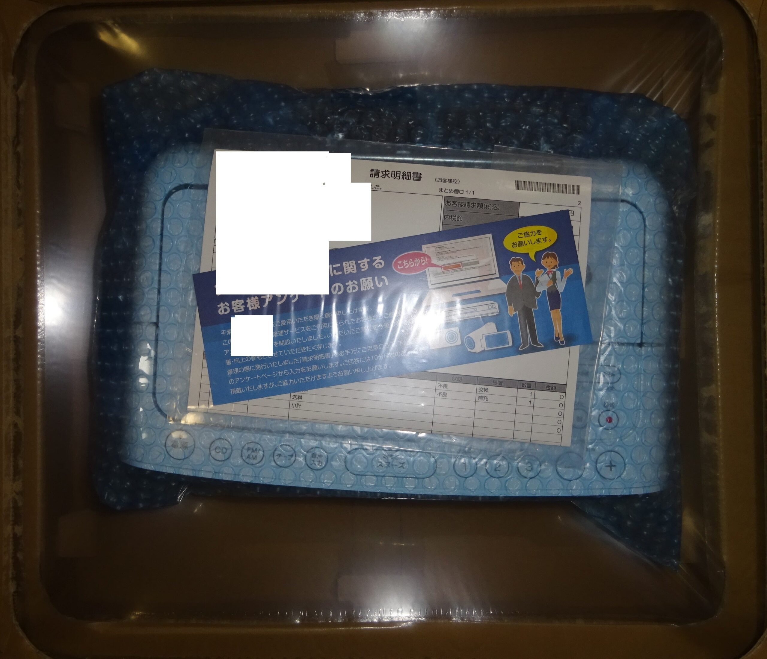 (後略)」と記させて頂きました。そして、本日、修理作業が完了して 出荷され 届きました。すなわち、上記のように 去る7月8日(月)に 引き取りが行われ 5日 掛かったことになりますね。因みに、たいへん 迷惑を 掛けて とのことでありました。