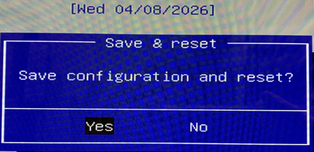 更に 「F10」を押して “YES”で “Enter”キーを押す(上に 本日 すなわち 4月8日[水]の日付が記されております)