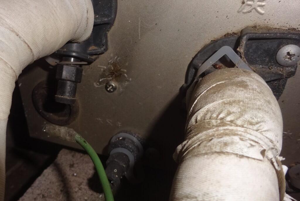 上の画像のガス風呂給湯器のアース端子(前述いたしましたように、誠に遺憾なことに アース線が 繋がれていません)