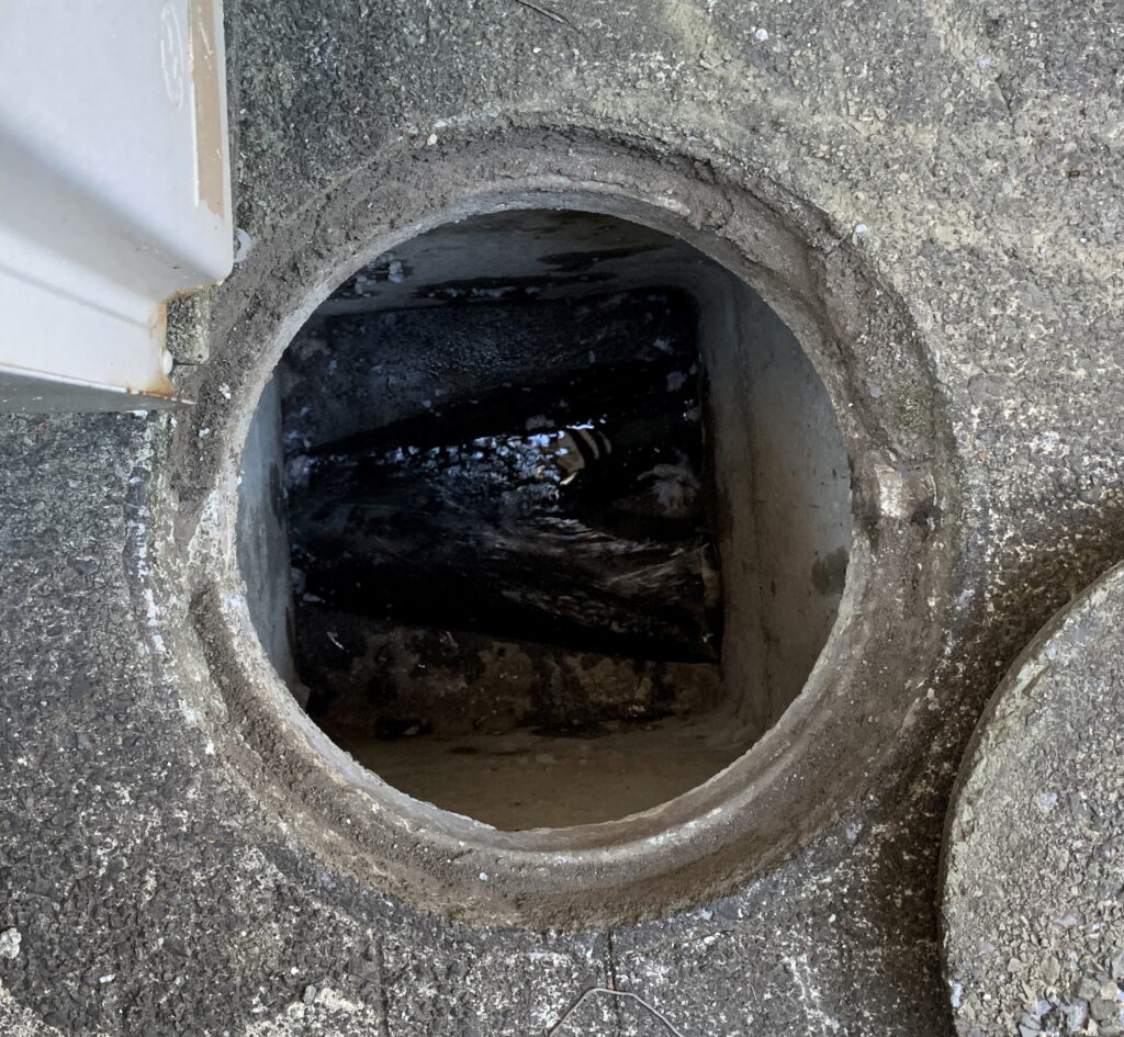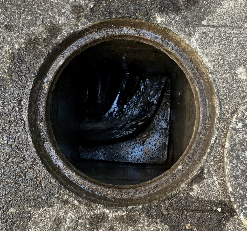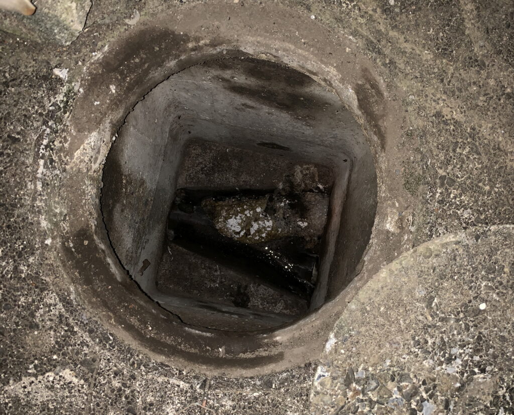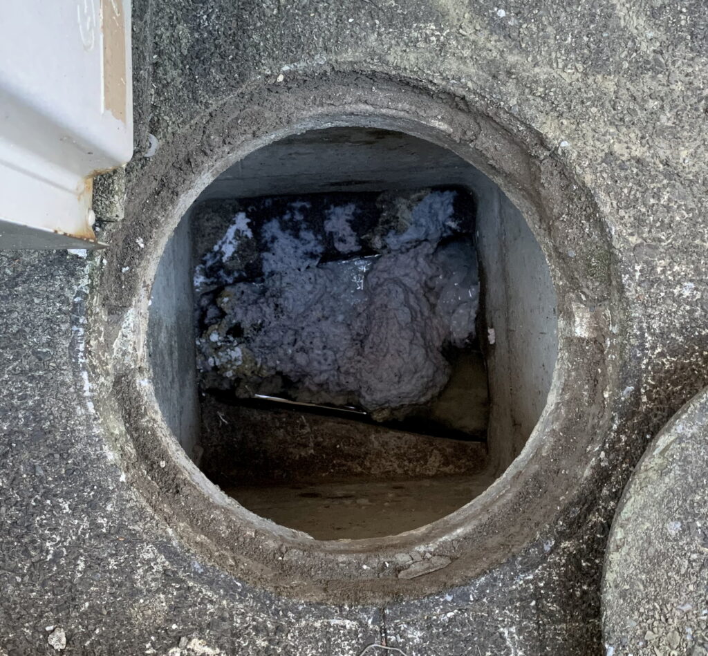 誠に有り難いことに、詰まっていた トイレットペーパーが流れ出した 汚水枡