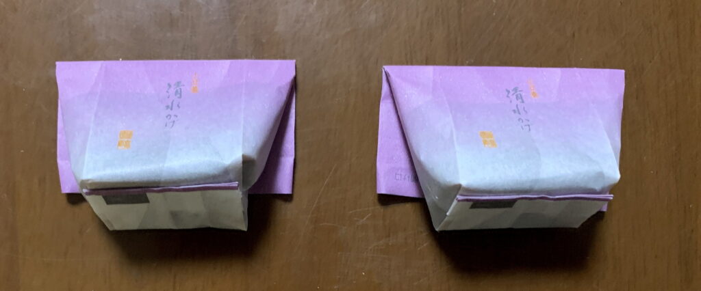 (後略)」と記させていただきました。それで、今回も、上記の 伝統のある 和菓子店で 購入する(ため)に、3日前の 1月12日(祝)の午後に 出掛でかけました。そこで、下の画像の和菓子を購入しました。ちなみに、昨年の7月に(つづいて 今回も 女性店員に 名刺を手渡しましたら、受取ってもらえませんでした。なお、目が こわくて つめたい女性店員でありました。それで、前回は 受け取ってもらえたことを話しましたら、前回と同じ人とのことでありました。そこで、マスクをしていたので、同一人物とは思わなかった と答えました。ついながら、その女性店員は、当方が話し終わる前に 誠に失禮なことに 言葉をかぶせてきます。それで、話を聞いてもらえないうちに ポイントを使って欲しいと伝えましたら、誠に遺憾なことに、会計が んだら ポイントを使うことはできないとのことでありました。そこで、アプリを出すように 求められたので、ポイントを使ってもらう目的で アプリのバーコードを示したと話しました。しかも、今度 何時いつ 来られるか 分からないと申しました。そのうえ、スーパー マーケットなどでは 会計をするときに ポイントを使いますかと尋ねてくれることを伝えました。すると、時間がかるが とのことでありましたが、誠に有り難いことに、ようやく ポイントを使ってくれました。