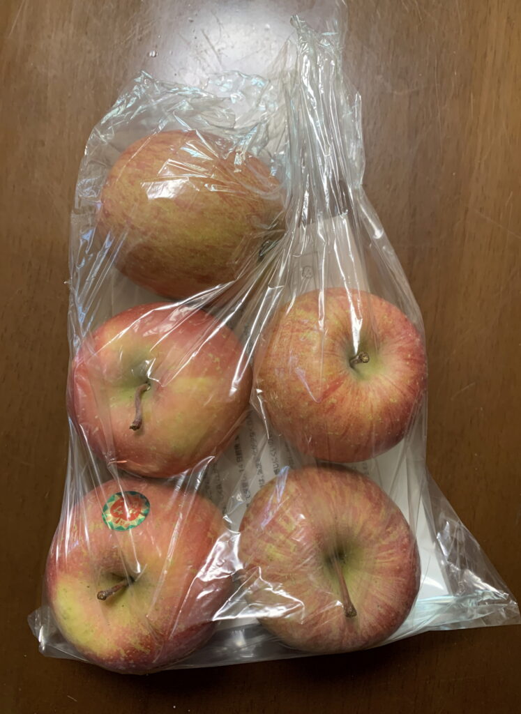 感謝の印として その保険の外交員のかたに 持ち帰り易いように 袋に詰めて 用意した、りんごりんご