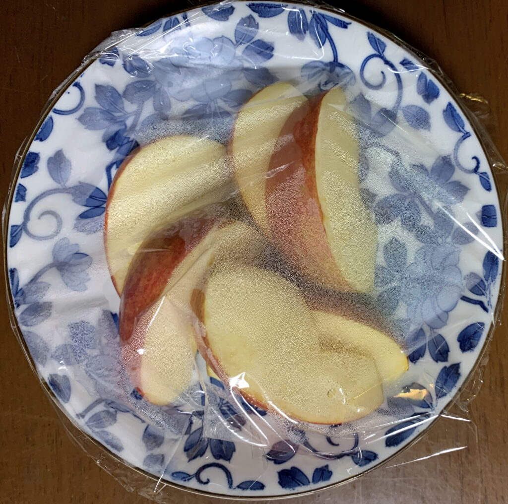 感謝の印として その保険の外交員のかたに 持ち帰り易いように 袋に詰めて 用意した、りんごりんご 十人じゅうにん分以上