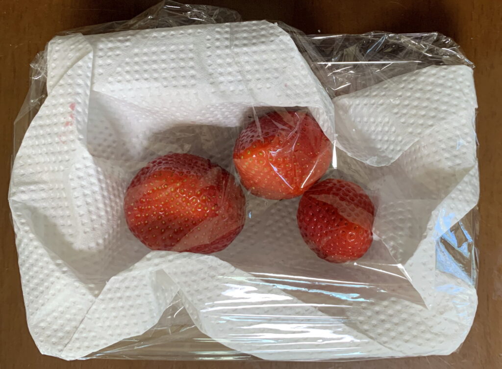 前述いたしましたように、大粒の(いちご)を用意させていただきました(水分を切って キッチン ペーパーをいて ひとひとつの(いちご)かさならないように あいだけて へたを下にします。そして、上から ふた もしくは ラップをします)