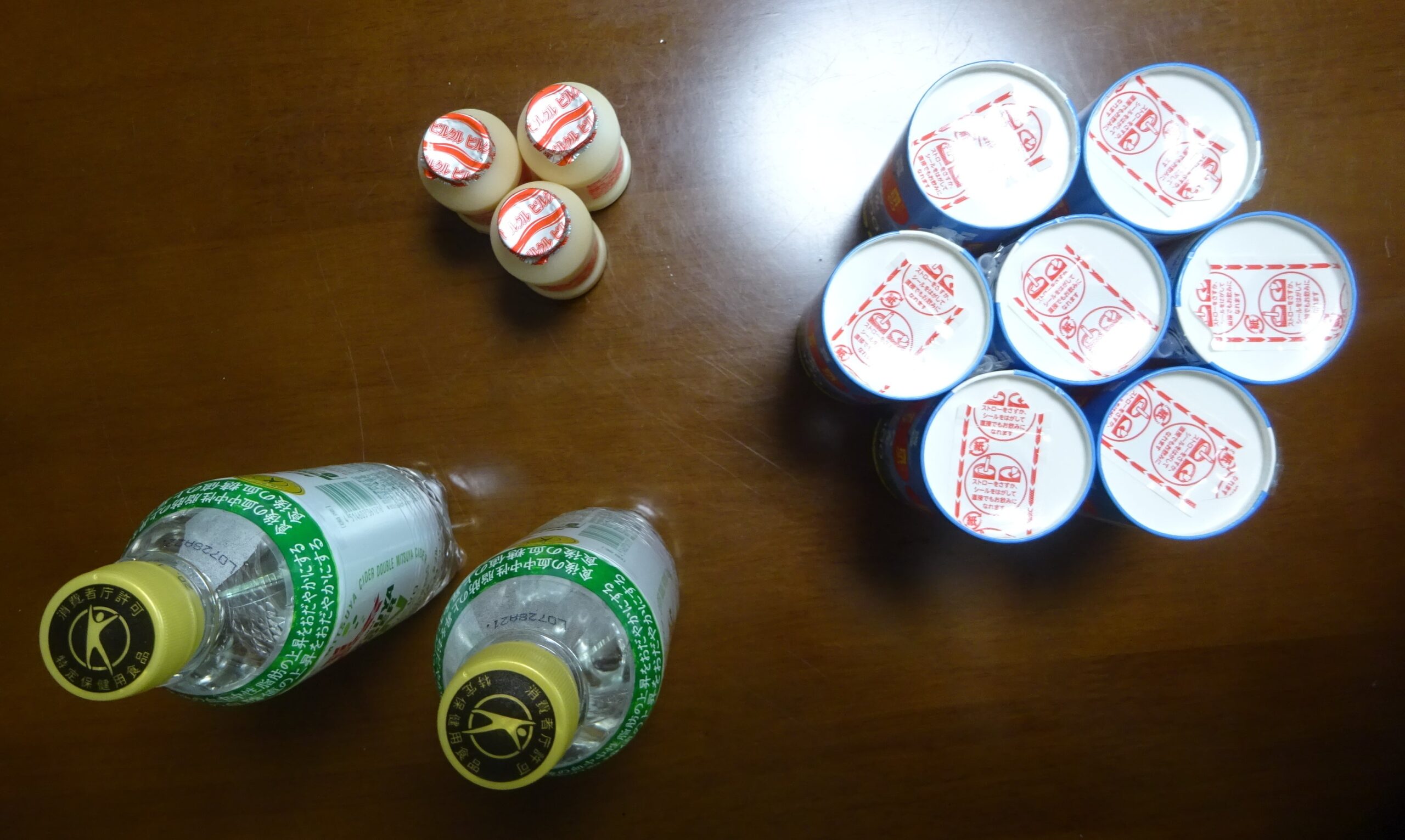 の100%ジュース と 乳酸菌飲料を 7本 そして 上記の某・サイダー(485ml)なども 感謝の印と致しまして 手渡しました。すると、やはり この保険の外交員の方によりますと、前回 そして 前々回も あげていますので、誠に有り難いことに 美味しい とのことでした。(後略)」と記させて頂きました。そして、今回も 上記と同様に、下の画像のように 急遽 おもてなしの準備をしました。それから、勧めても 全く 手を付けてくれませんで 持って来た水を飲んでいましたので、帰るときに この保険の外交員の方に 手渡しました。