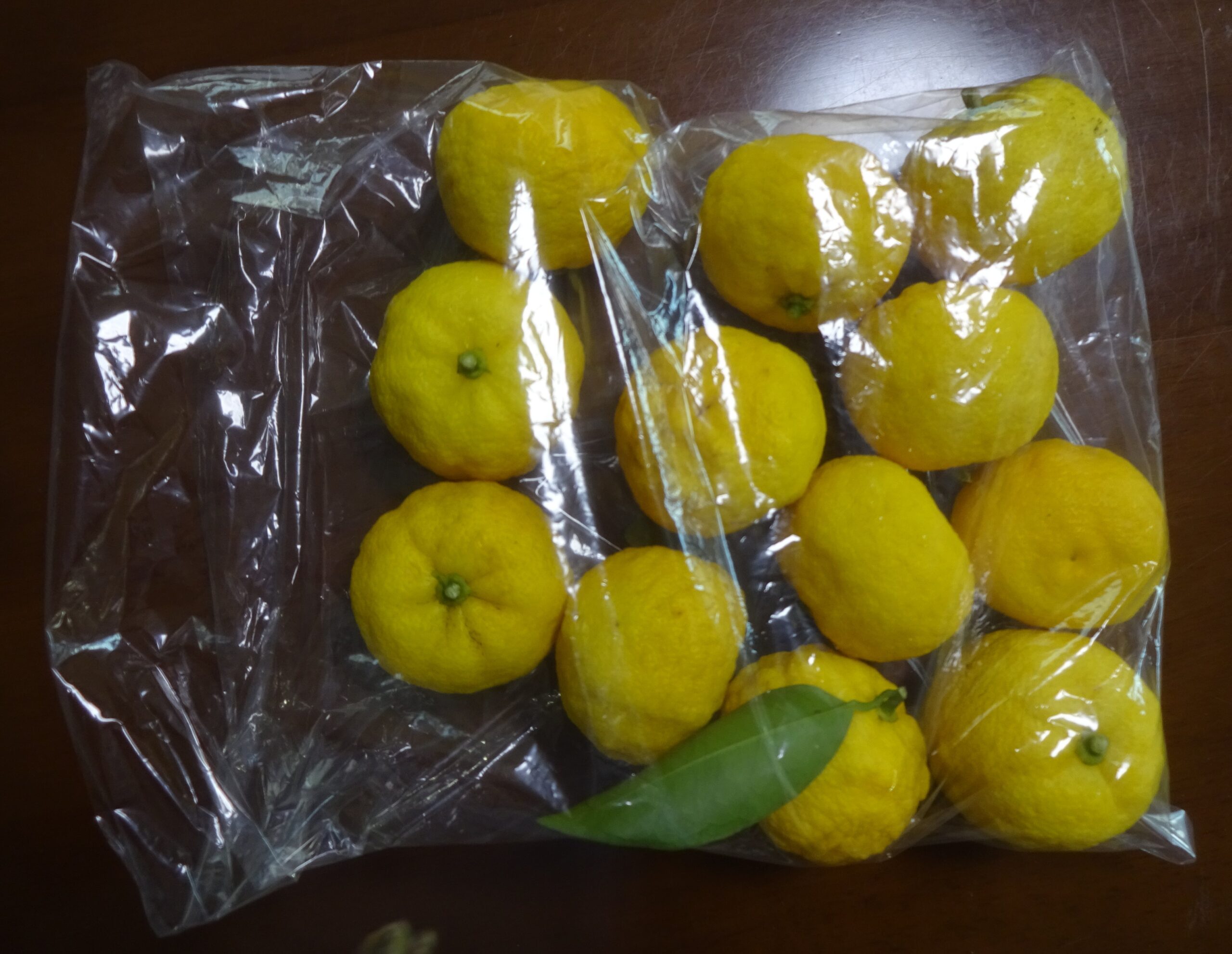 持ち帰り易いように 袋に詰めて あげた 柚子の実 十二個
