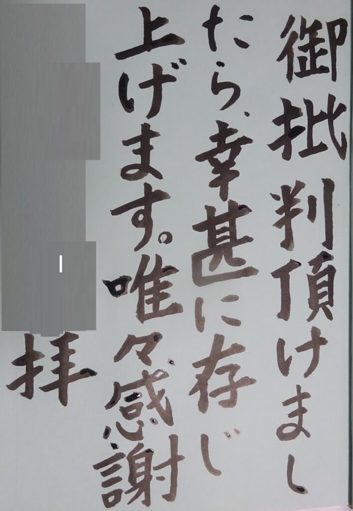 しかも、本日 すなわち 8月9日(土)の『突然の電話連絡・続報』のブログに記させて頂きましたように、去る 11年前の10月8日(水)の『親の受診に付き添っていること・1(循環器内科医[女医])』のブログ そして 去る 11年前の11月9日(日)の『親の受診に付き添っていること・2(循環器内科医[女医])』のブログのそれぞれ 共に中段やや上、更に、去る 10年前の2月23日(月)の『天皇陛下行幸の君恩に浴して』のブログの中段などに記させて頂きました 某・ボランティア(英語:volunteer)のサークル(英語:circle)の関係の 約27年前の後輩から、誠に有り難いことに、突然の電話連絡が入りました。それで、その後輩に 成書を贈ることにしました。因みに、この作業が 朝迄 掛かり 更に お昼になりました。要するに、今回も、ほとんど 寝ないで 作成させて頂き 便りを含めて 6日後の 夕方になりました。