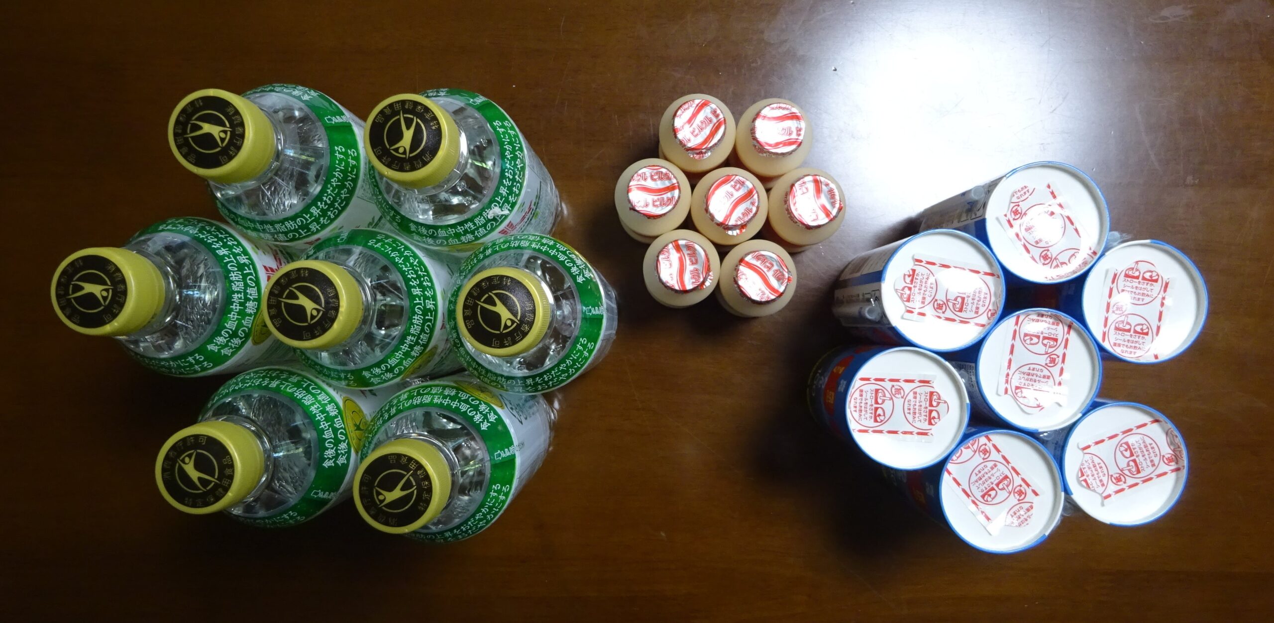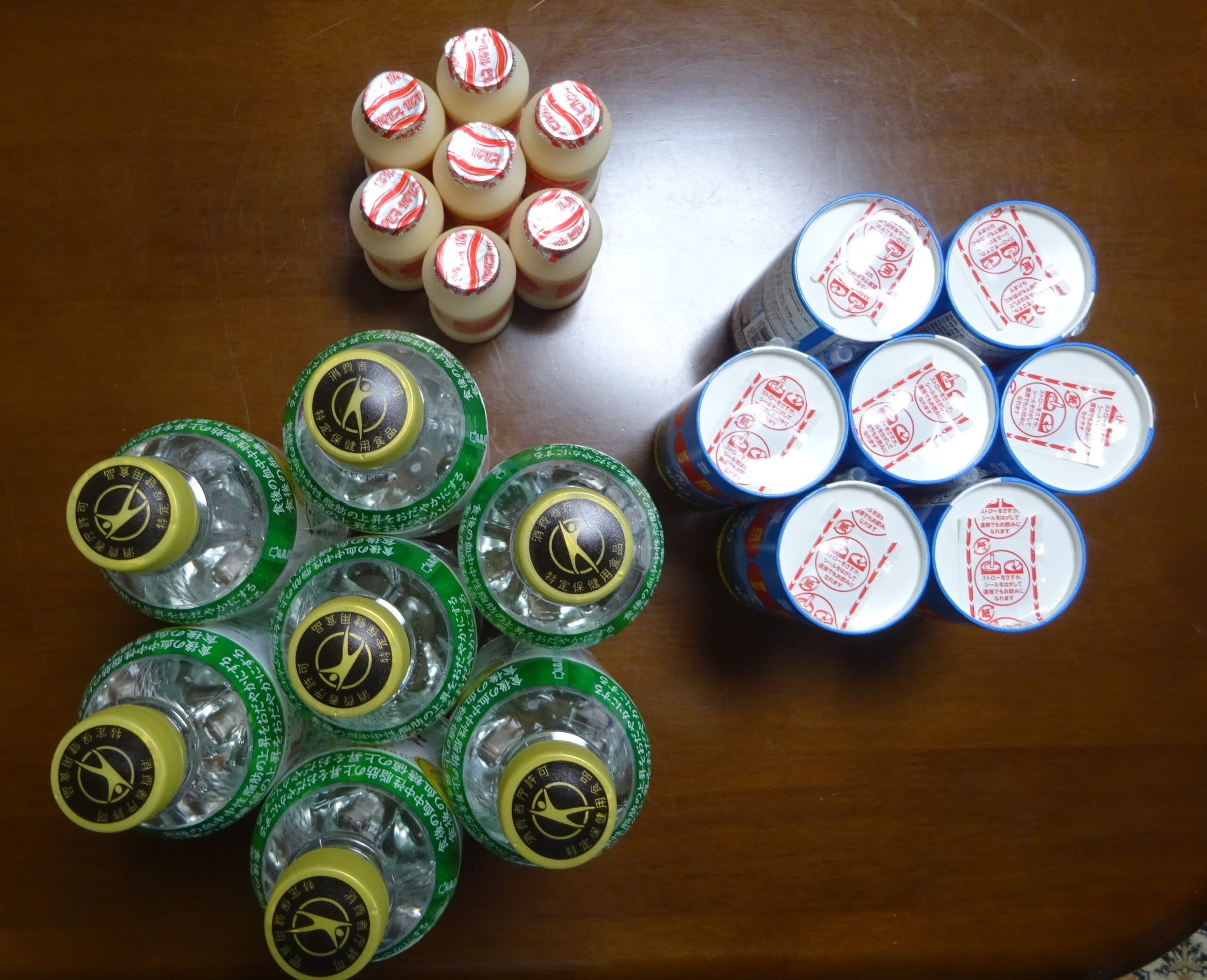 〘(前略)今回も 上記と同様に、下の画像のように 急遽きゅうきょ おもてなしの準備をしました。ところが、勧めても、今回も まったく 手を付けてくれませんでした。それで、上記の 自然の甘さの 人参にんじんが含まれた りんごりんごの100%ジュース、栄養ドリンク、飲み物(乳酸菌飲料) そして 上記の 某・サイダー(485ml)を それぞれ 七人しちにん分を 感謝の印として 手渡そうとしましたが、今回も 受け取ってもらえませんでした。ちなみに、いつものように 代わりに 貴重な資料を手渡しました。