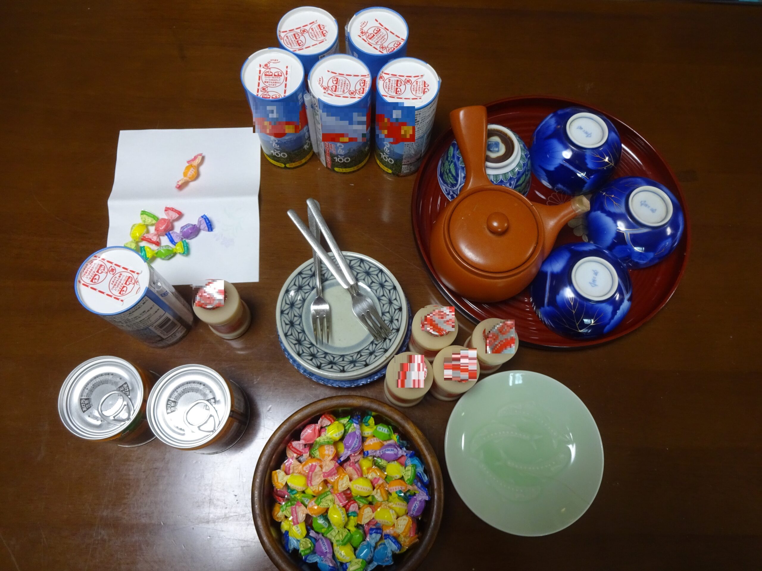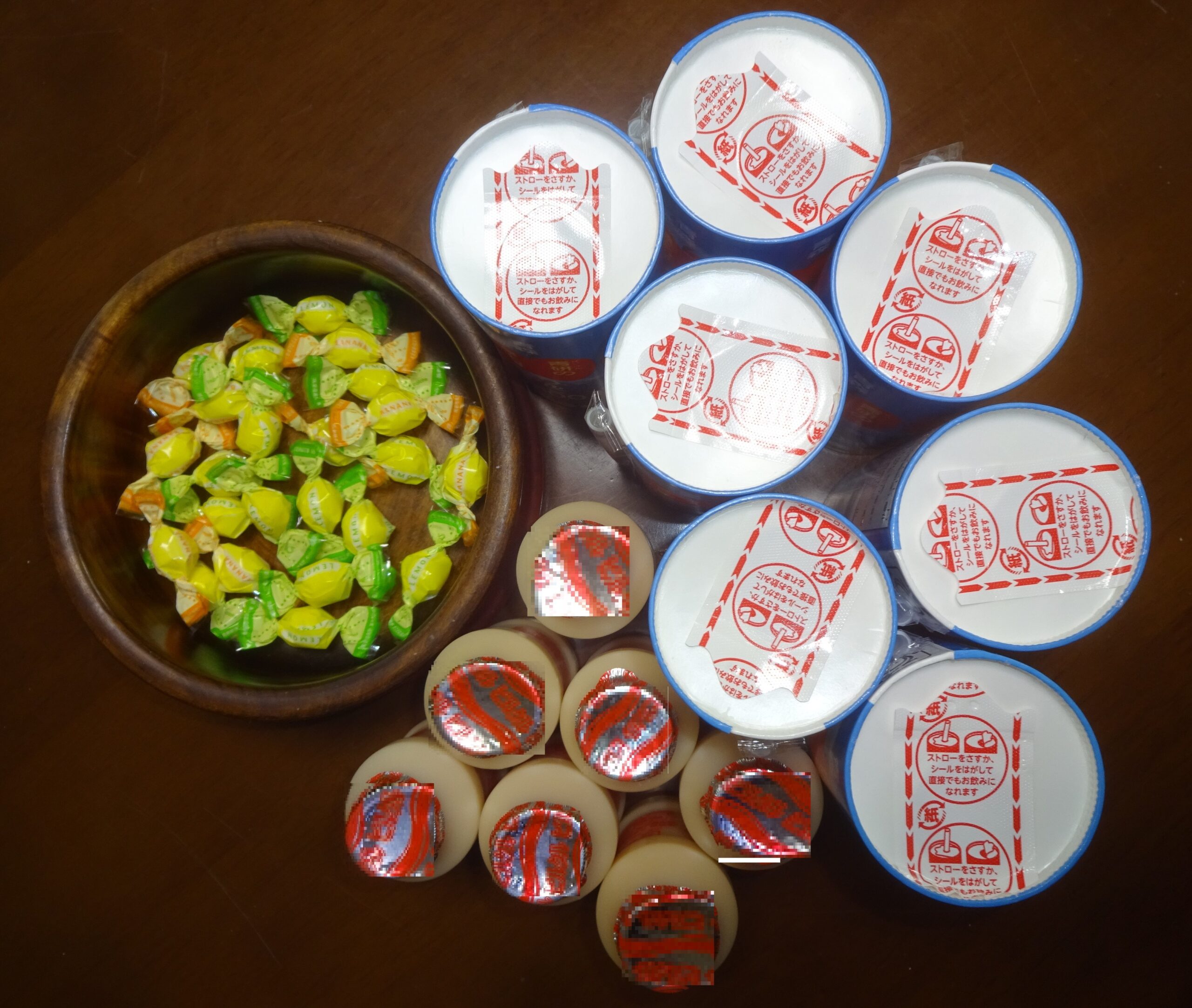 (後略)〕と記させて頂きました。今回も 上記と同様に、下の画像のように 急遽きゅうきょ おもてなしの準備をしました。ところが、勧めても、今回も まったく 手を付けてくれませんでした。それで、上記の 自然の甘さの 人参にんじんが含まれた りんごりんごの100%ジュース、栄養ドリンク そして 飲み物(乳酸菌飲料)を それぞれ 七人しちにん分を 感謝の印として 手渡そうとしましたが、今回も 受け取ってもらえませんでした。ちなみに、いつものように 代わりに 貴重な資料を手渡しました。