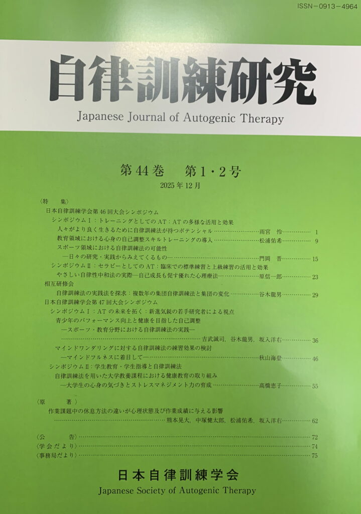 「自律訓練研究」(本日 すなわち 令和8年[2024年]4月3日に 届いて、ぐ 寄贈)