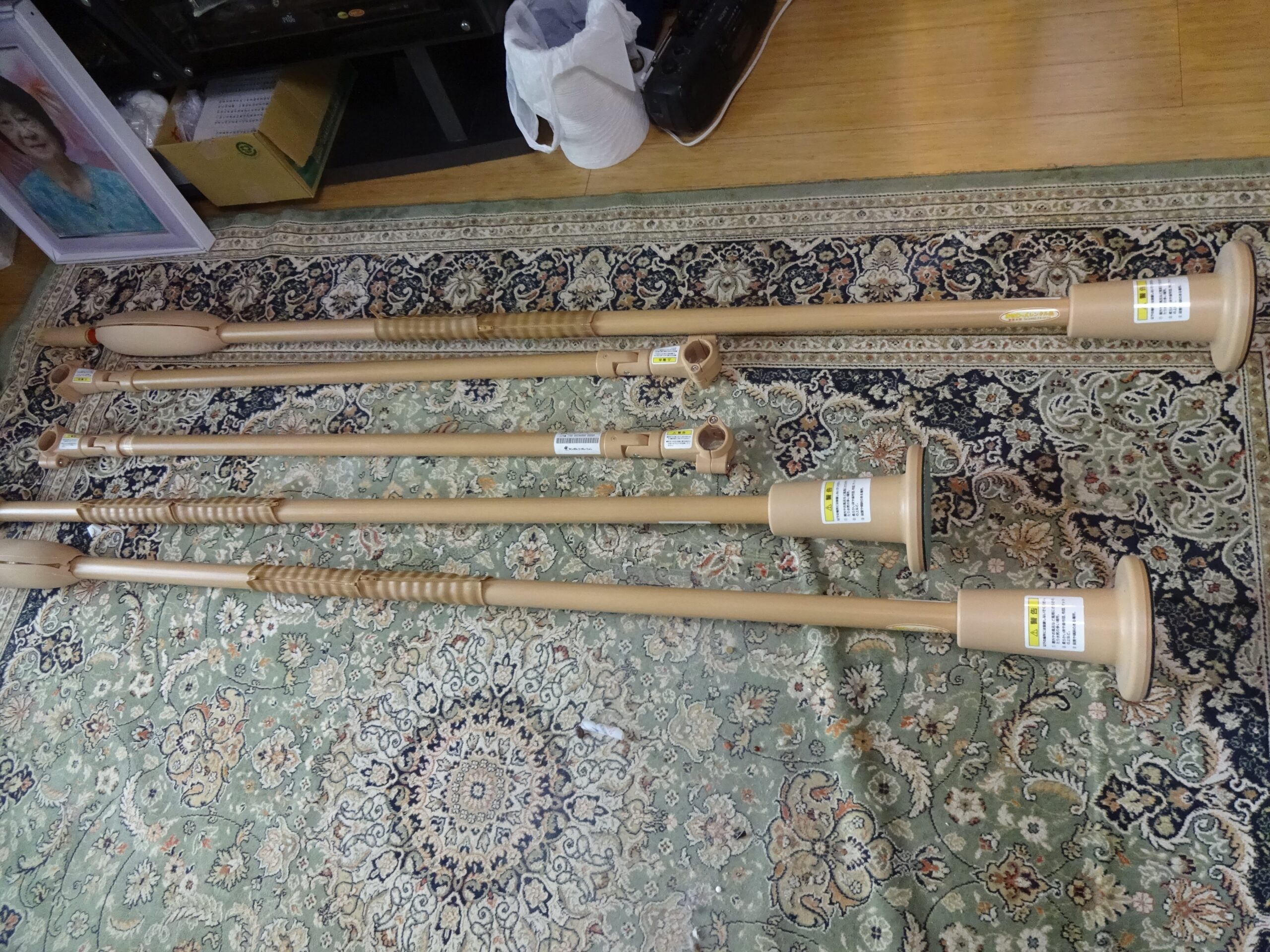ときに、父親のケア・マネージャー(英語:care manager)によりますと、お風呂に入れる ヘルパー(日本語:介護福祉士)が 必要とした とのことでありますので、下の画像の 脱衣所にある 手摺は 残されました。