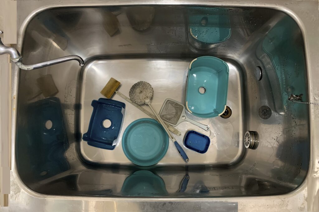 〖(前略)今回は また 父親への供養と思い、当家の庭で 朝摘みをした 柚子の実を入れた お風呂の準備をしました。因みに、今シーズンの 柚子湯は 最後であります。誠に有り難く存じました。なお、柚子の実を 全て 取った 柚子の木に対しまして、家政婦さんと共に 感謝の言葉を捧げました。すると、誠に有り難いことに、新たに 柚子の木に花が咲き始めました。(後略)〗と記させて頂きました。すなわち、今シーズンの 柚子湯が 最後でありましたので、旧家の風呂釜清掃を行なおうと思いました。つまり、上記のように、一つ 穴の風呂釜清掃の場合、水位が穴より 5cm 位 上になるように調節するとされています。それで、下の画像のように、そう致しました。なお、この中に お風呂の小物 すなわち 湯桶 や 風呂椅子などを 全 て入れて、 序 に 掃除するといいとされています。それで、下の画像のように、そう致しました。序で乍ら、前述のように 酸素系漂白剤250グラムを 水に溶かします。このとき、水に溶けにくいので、洗面器に水を 汲 んで溶かしてから入れるといいです。その 為 に、ゴム(英語:gum)手袋が必要です。それで、そう致しました。 因 みに、そのまま 3~6時間放置するとのことでありますが、前回と同様に 6時間放置しました。そして、お湯を抜く前に 再び追い炊きし(3分程度)、排水します。それから、シャワーを 穴に向かって ななめ正面や 斜め下から当てて流す。浴槽は スポンジで 軽くこすって流す。なお、以上の作業を行なったことを 後日 家政婦さんに話しました。そして、気分的にも 気持ちがいいと伝えました。すると、誠に有り難いことに、その家政婦さんも、気持ちがいいとのことでありました。