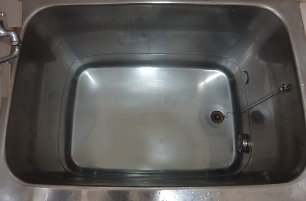 さて、今回も、父親が使用していた 風呂釜の清掃をしました。 因 みに、上記のように、一つ 穴の風呂釜清掃の場合、水位が穴より 5cm 位 上になるように調節するとされています。それで、下の画像のように、そう致しました。なお、この中に お風呂の小物 すなわち 湯桶 や 風呂椅子などを 全 て入れて、 序 に 掃除するといいとされています。それで、下の画像のように、そう致しました。序で乍ら、前述のように 酸素系漂白剤250グラムを 水に溶かします。このとき、水に溶けにくいので、洗面器に水を 汲 んで溶かしてから入れるといいです。その 為 に、ゴム(英語:gum)手袋が必要です。それで、そう致しました。 因 みに、そのまま 3~6時間放置するとのことでありますが、前回と同様に 6時間放置しました。そして、お湯を抜く前に 再び追い炊きし(3分程度)、排水します。それから、シャワーを 穴に向かって ななめ正面や 斜め下から当てて流す。浴槽は スポンジで 軽くこすって流す。そうして、冬の間は、水位が 穴より 5cm 位 上になるように 水を張っておきます。