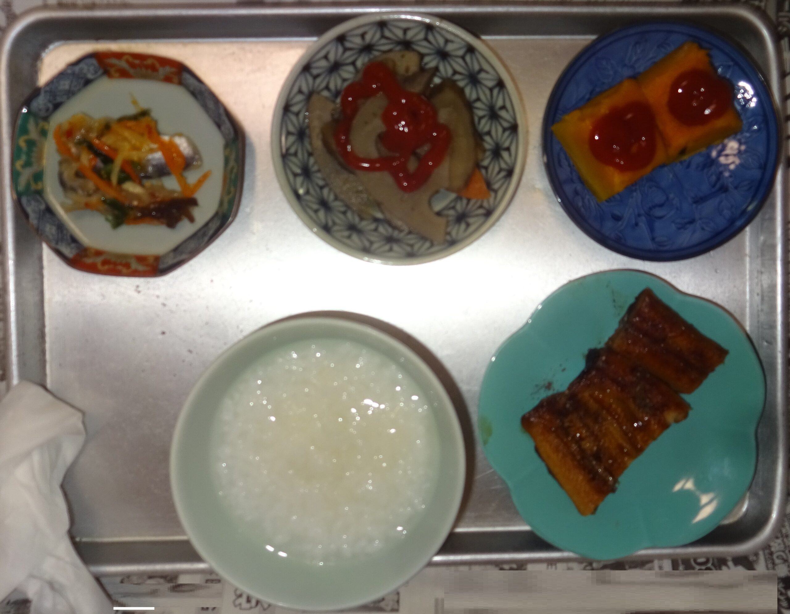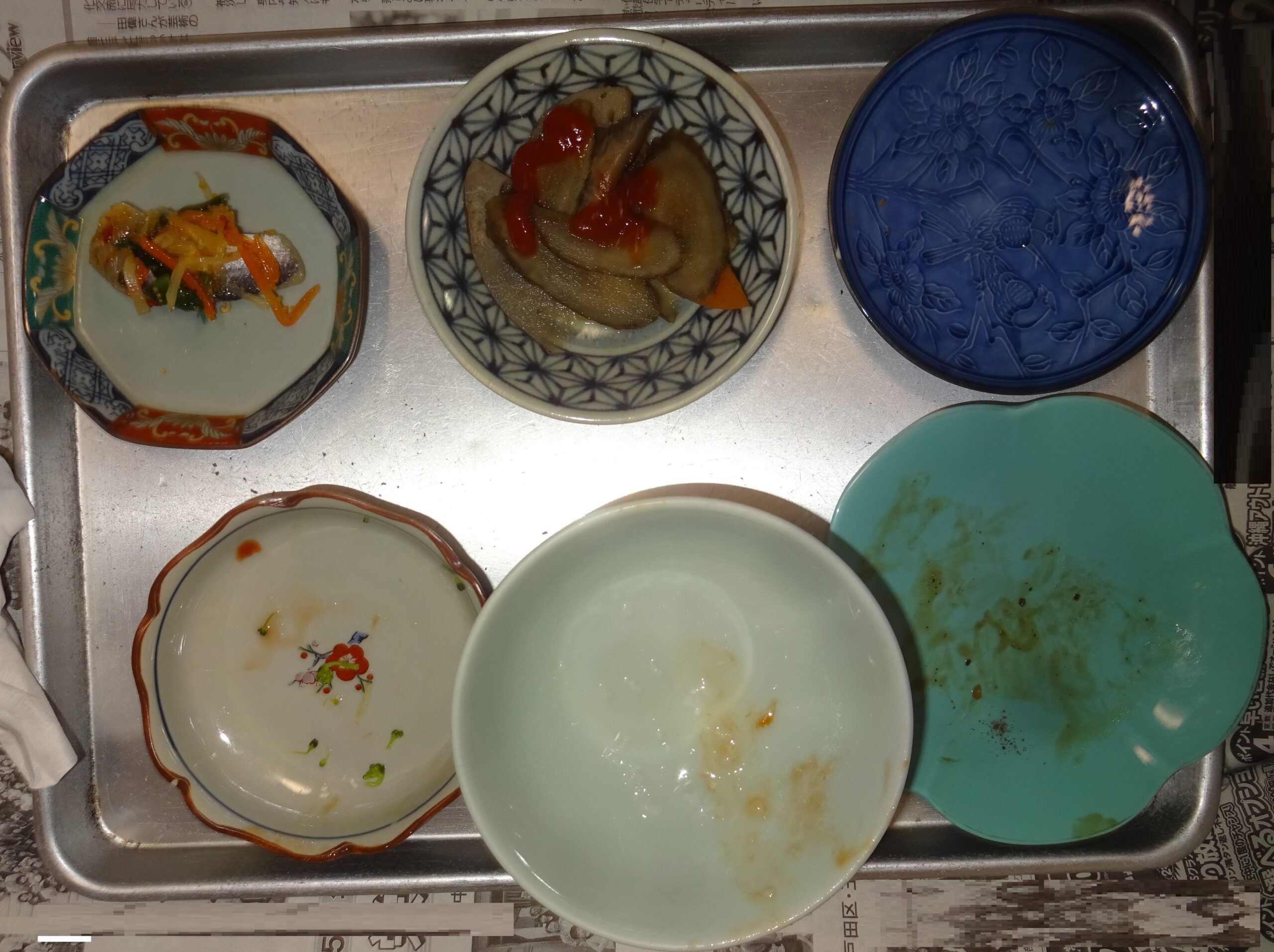 父親の朝食の一部(その上の画像の 父親の朝食をげて、さらに 新たに 料理の品目を増やしています。食べけて 食べ進んでいます)