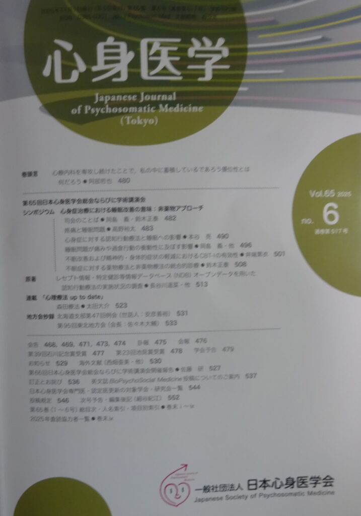誠に有り難いことに、本日 すなわち 令和7年8月13日に 届いた〘日本心療内科学会誌〙
