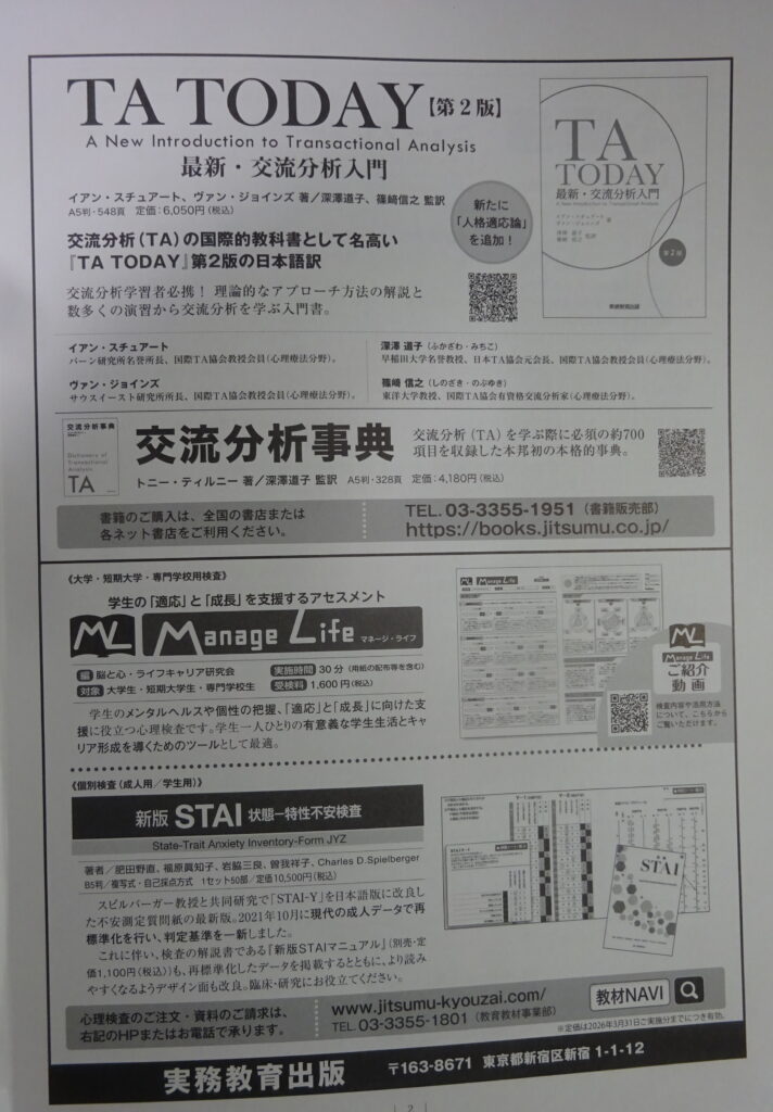 誠に有り難いことに、本日 すなわち 令和7年9月22日に 届いた 〖交流分析研究〗
