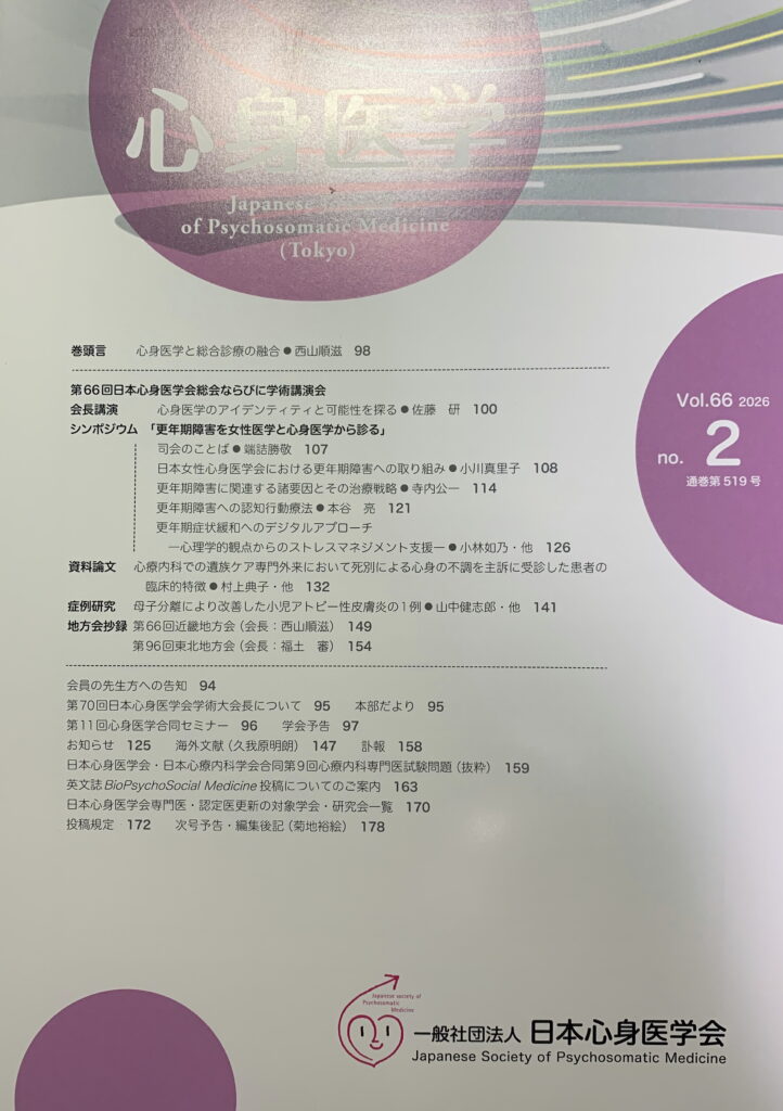 誠に有り難いことに、本日 すなわち 令和8年3月2日に 届いた「心身医学」