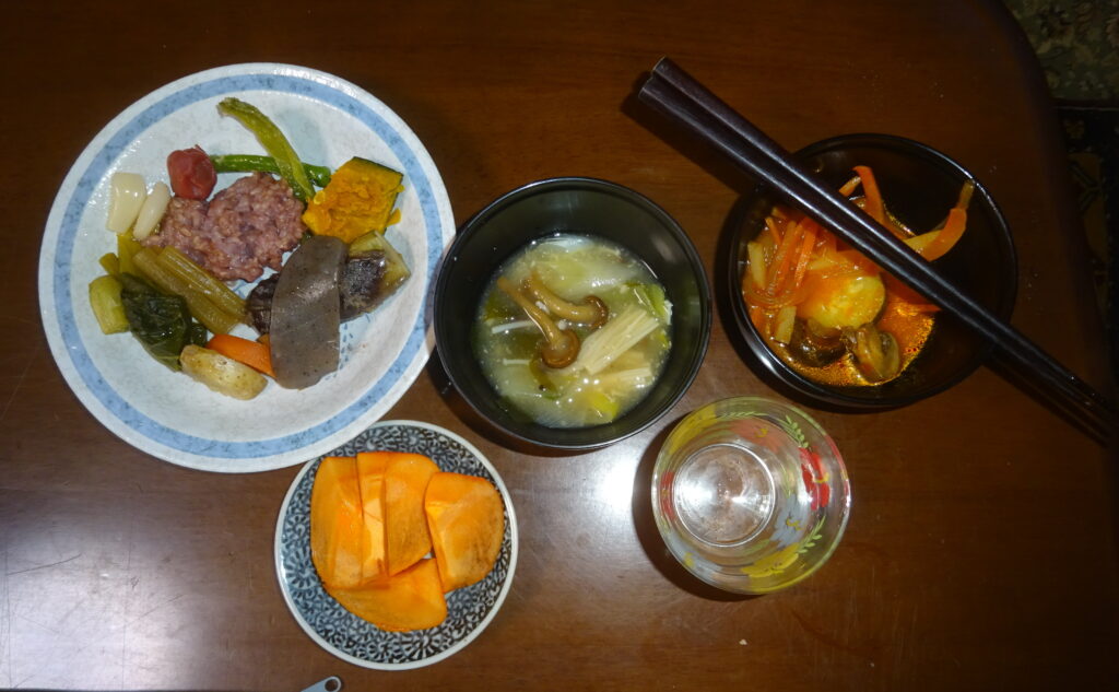 「(前略)三粒のマスカットを出しました。それで、去る 11年前の11月24日(月)の『抗酸化物質』のブログに書かれてある 抗酸化物質の話を伝えました。 因みに、女性の方が お肌のことで 酸化には敏感なのではないかと その家政婦さんに話しました。すると、誠に有り難いことに、その家政婦さんは 頷いて 納得して 同意してくれました。(後略)」と記させていただきました。 因みに、去る11月13日(木) の「菜食のおかず・1444(買い物)」のブログの中段やや下に、「(前略)国産の 富有柿(家政婦さんの為の商品でもあります。因みに、その家政婦さんによりますと、硬い柿があるとのことでありました。なお、四角く 平たい形状で 硬めの シャキシャキした 食感 と さっぱりした甘さが特徴である 次郎柿のことである と思われました。それで、今は亡き 父親の実家の岐阜県の富有柿は、大きくて 丸くて 柔らかくて ジューシーで とろけるような甘さが特徴である と伝えました。但し、東京では なかなか 入手できないと話しました)(後略)」と記させていただきました。すなわち、その家政婦さんが 硬い柿である 次郎柿のことを言及しましたので、上記のように 大きくて 丸くて 柔らかくて ジューシーで とろけるような甘さが特徴である 富有柿を 今回は 購入してきました。つまり、前述いたしました マスカットと同様に、その富有柿も 皮ごと食べますと 抗酸化物質を摂取ることができるのであります。ところが、その家政婦さんによりますと、皮を剥いても いいですかとのことでありました。それで、その家政婦さんが食べるのでありますから、任意でいいと伝えました。すると、結局 その家政婦さんは その富有柿の皮を剥きませんでした。要するに、誠に有り難いことに、抗酸化物質を摂取ることができますね。