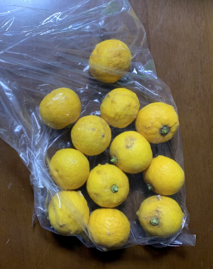 持ち帰り易いように 袋に詰めて、その家政婦さんに あげた 柚子の実