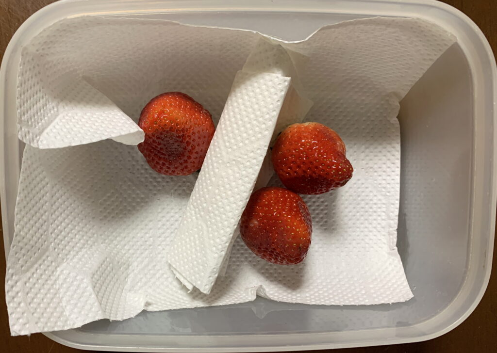 前述いたしましたように、大粒の苺を あげました(水分を切って キッチン ペーパーを敷いて 一つ一つの苺が 重ならないように 間を空けて 蔕を下にします。そして、上から 蓋 もしくは ラップをしました)