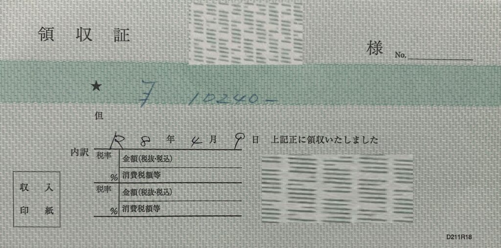 上記のように 前回 すなわち 去る4月9日(木)の\12,040円の領収書(上の画像の領収書を渡されたときには 日付も 氏名も 捺印もされていませんでした。それで、日付と 苗字だけ 記載してもらいました)