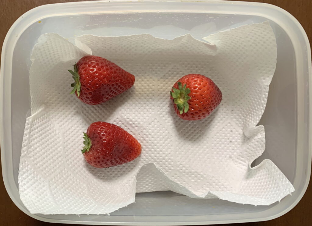 前述いたしましたように、その家政婦さんの食事のときに 大粒の苺を あげました(水分を切って キッチン ペーパーを敷いて 一つ一つの苺が 重ならないように 間を空けて 蔕を下にします。そして、上から 蓋 もしくは ラップをしました。因みに、一年中で 今頃の苺が 一番 いいように思われると その家政婦さんに伝えました。すると、誠に有り難いことに、その家政婦さんによりますと、美味しかった とのことでありました