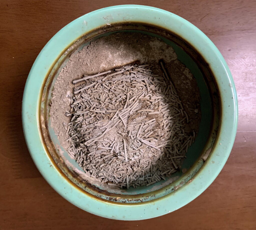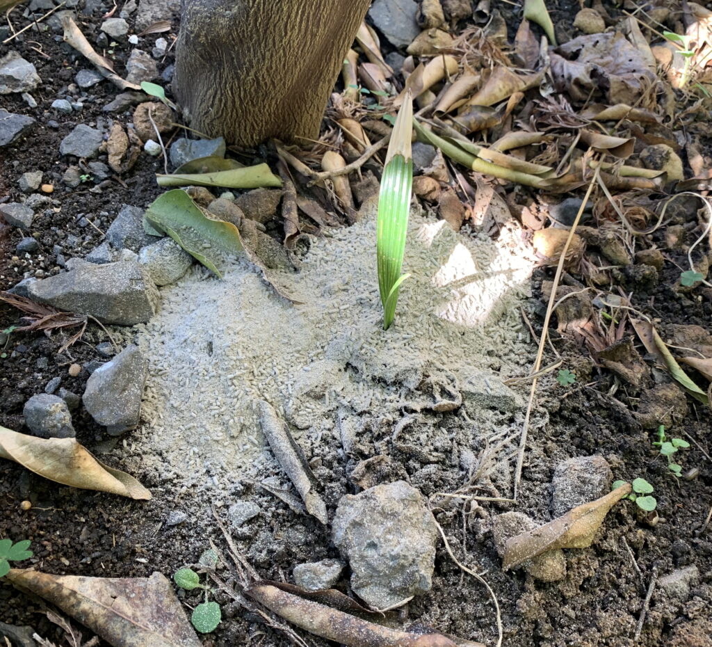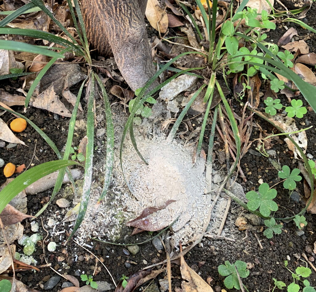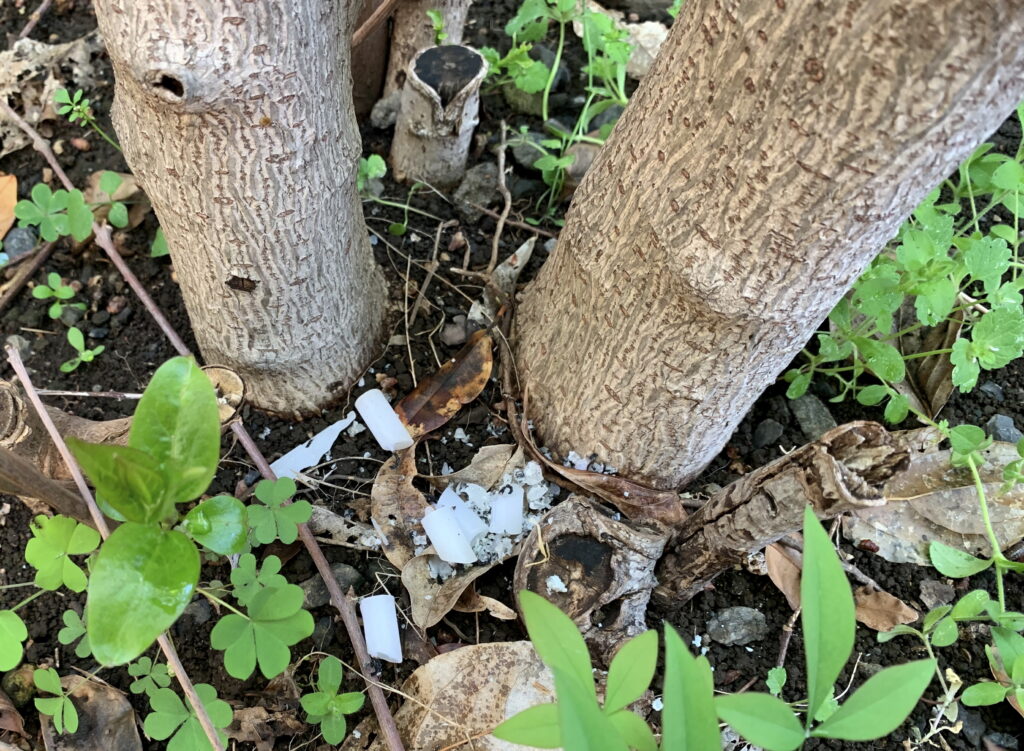 当家の庭の植物の根元に撒いた 線香の灰