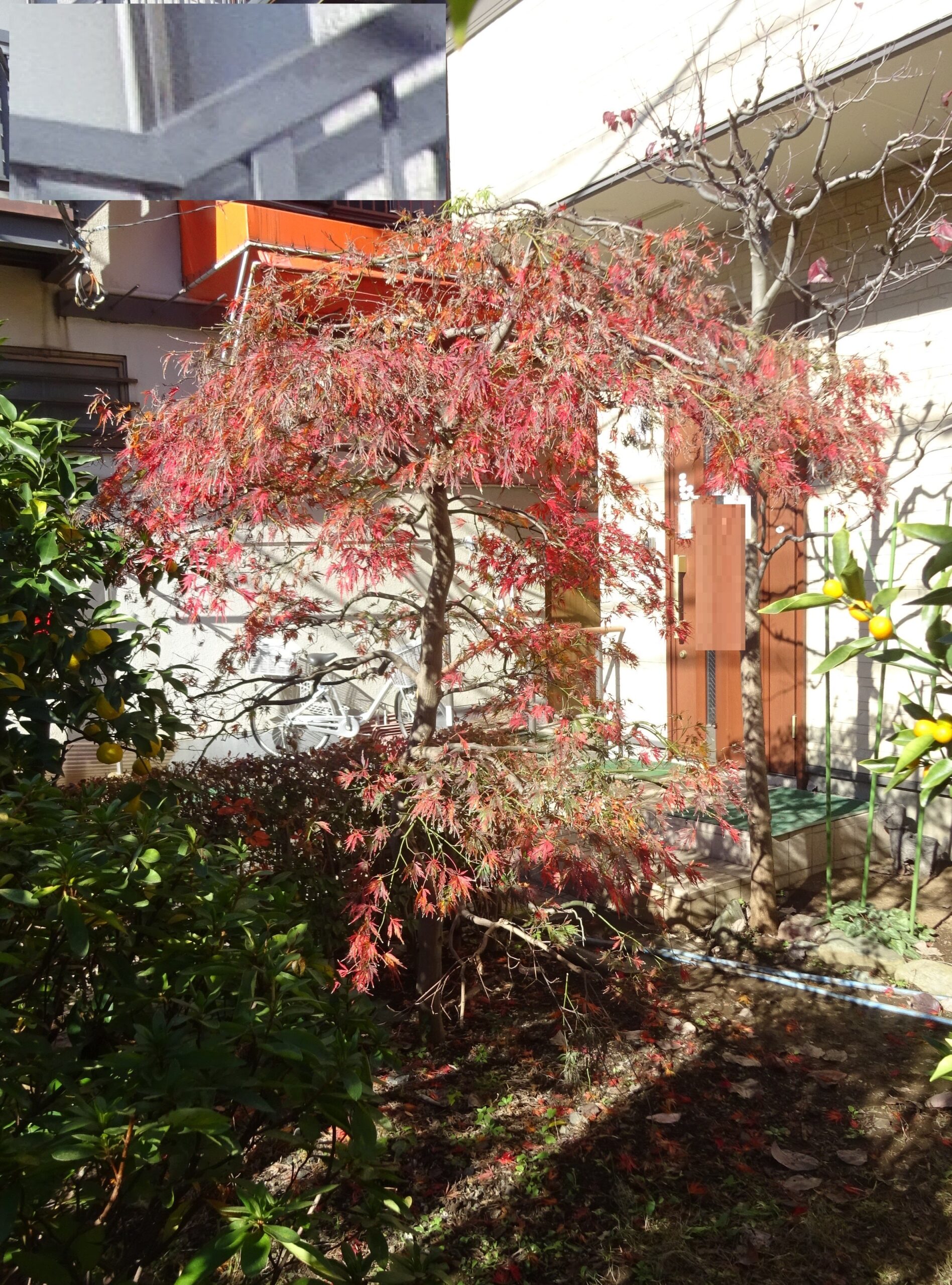 ところで、今年も、上記の 自宅の庭の 枝垂れ紅葉(楓の木)が 下の画像のように 紅葉しました。