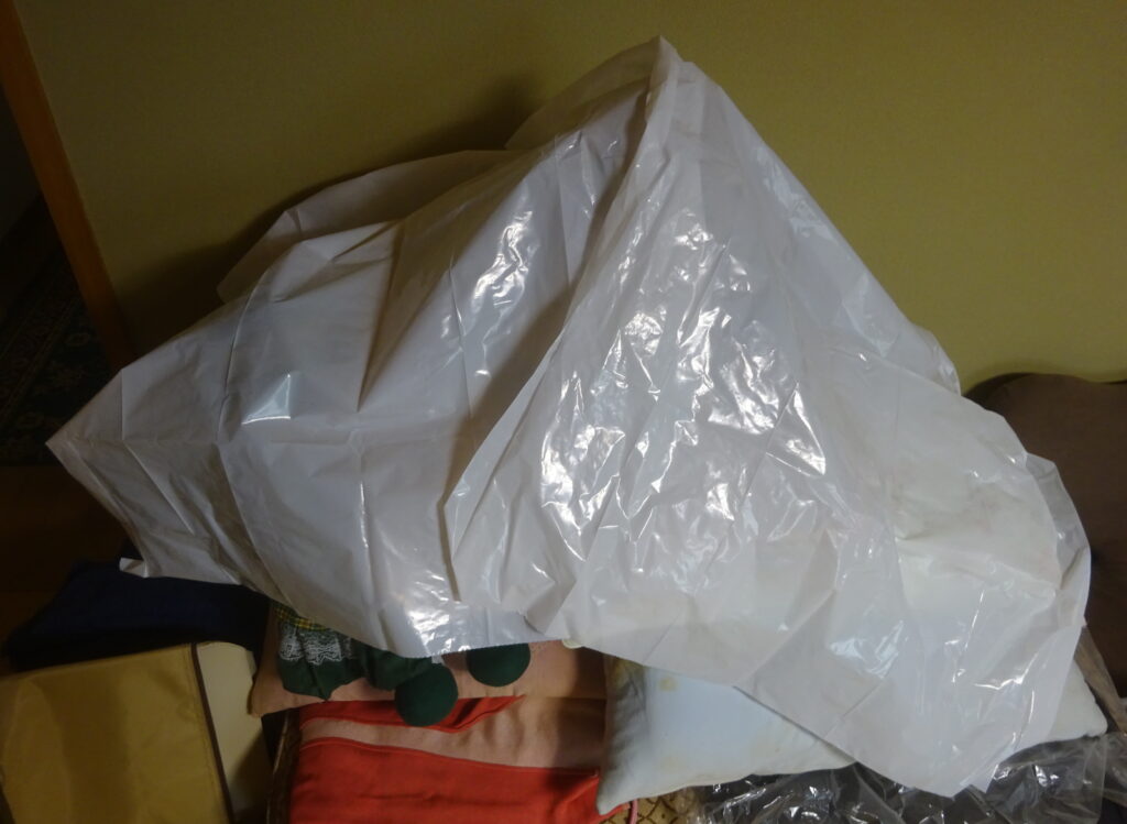 ビニール袋で 覆いをした 毛布 や ぬいぐるみなど(新家・2階)