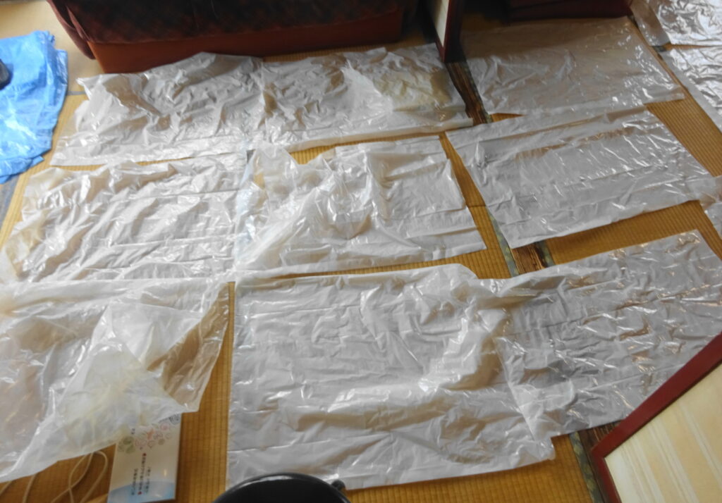 ビニール袋で 覆いをした 書類(新家・1階)