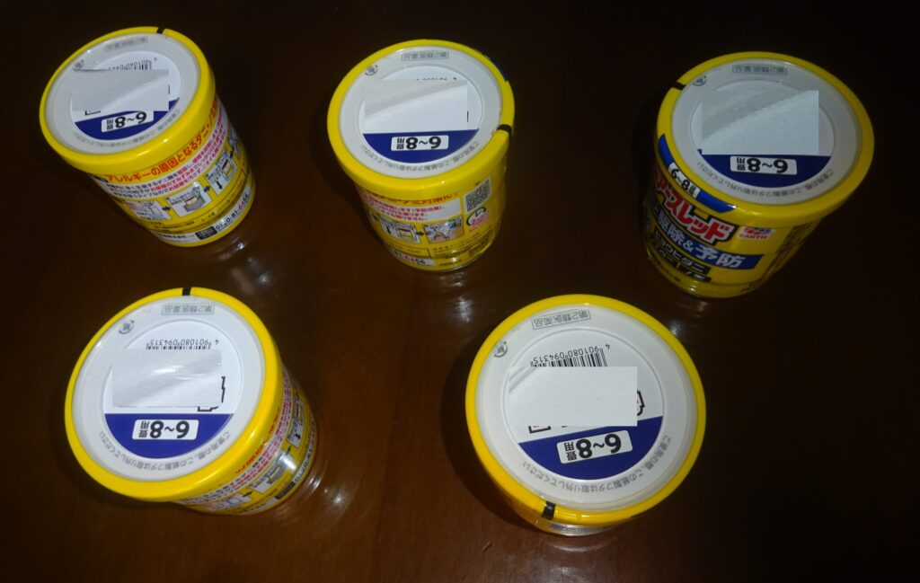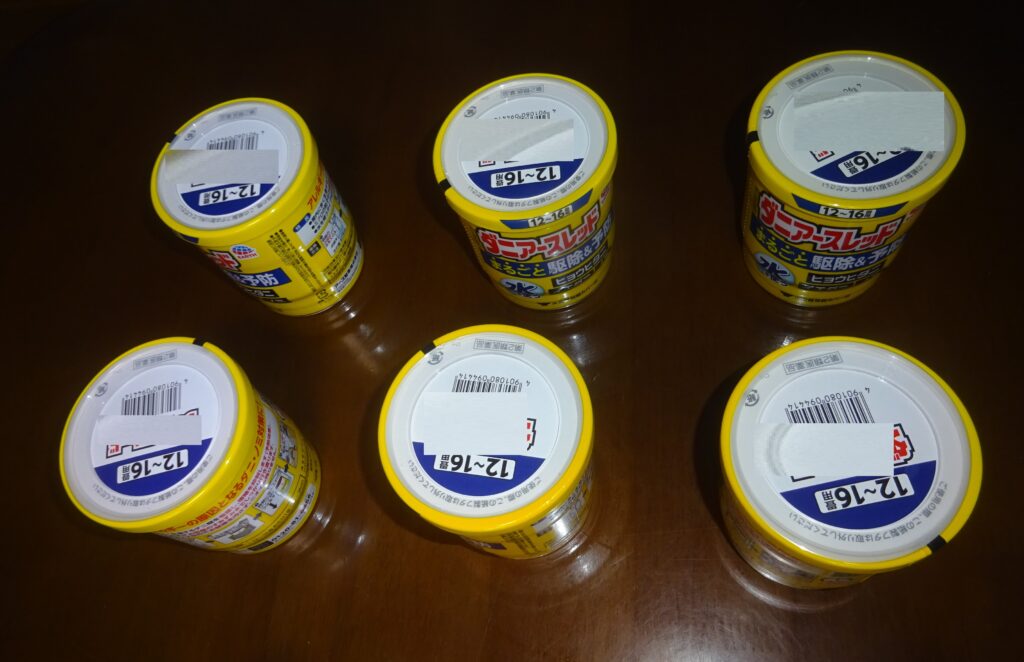 ならびに、その通販 と 某・ドラッグ ストアで 6~8畳用の商品 5個 そして 12~16畳用の商品 6個を 購入しました。