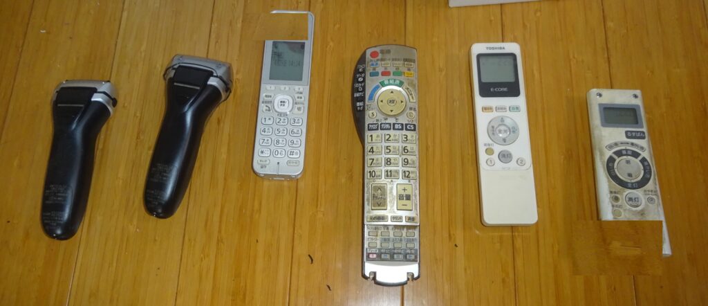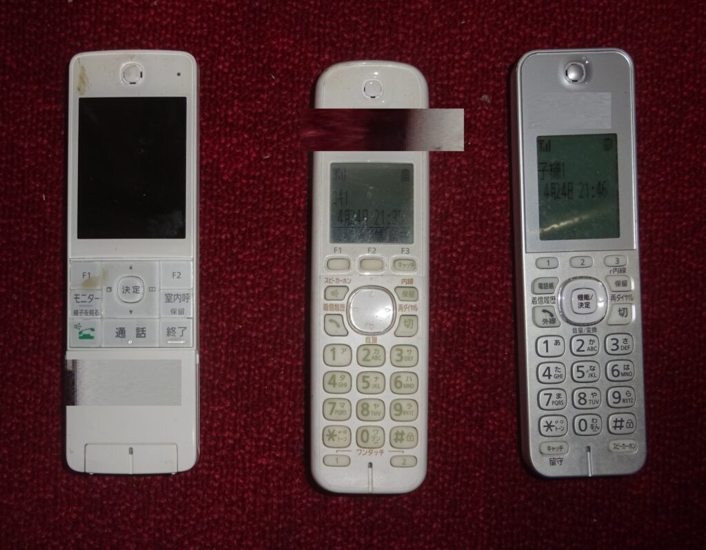 室外に出した 電話・子機、ドアフォン・子機、ファックス・子機 や リモコンなど(旧家・1階)