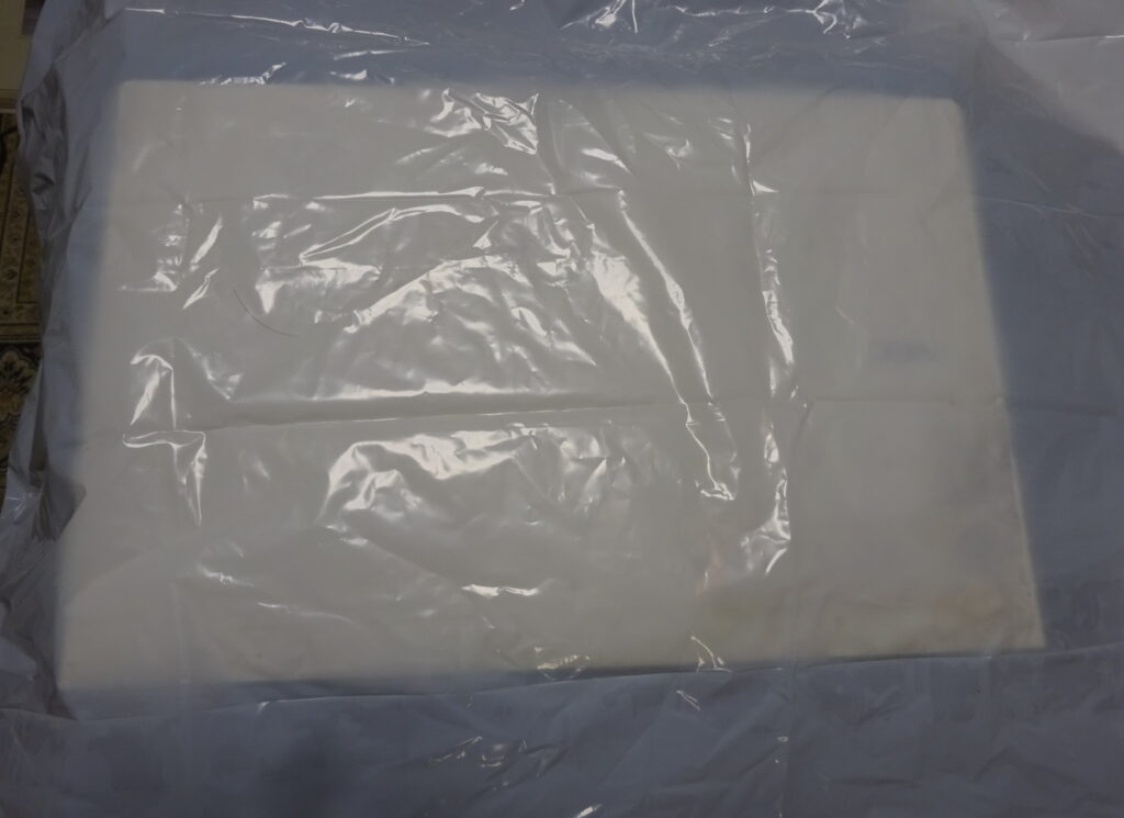 ビニール袋で 覆いをした 今は亡き 父親用の ラバー シーツ そして バス タオル(新家・1階)