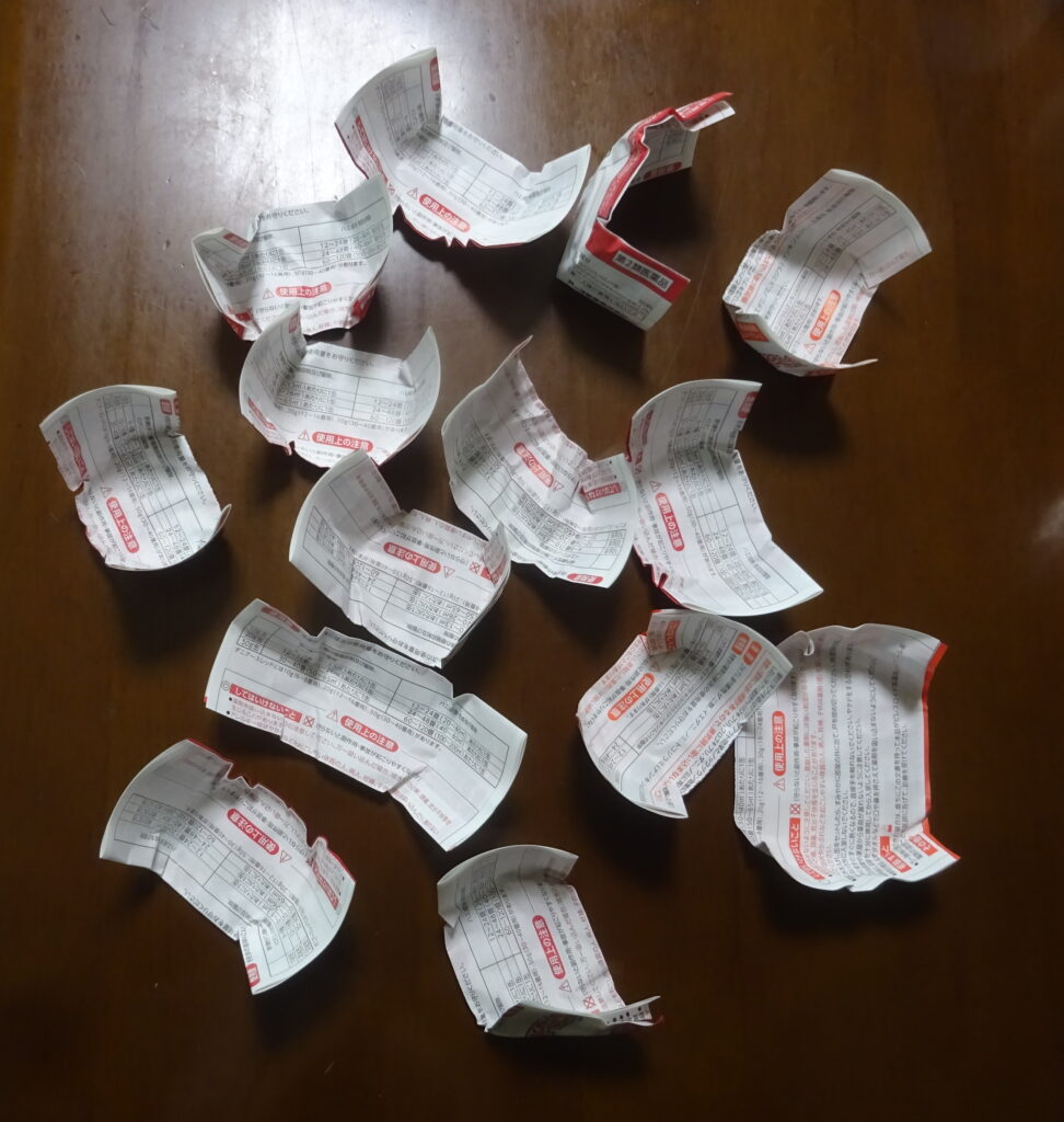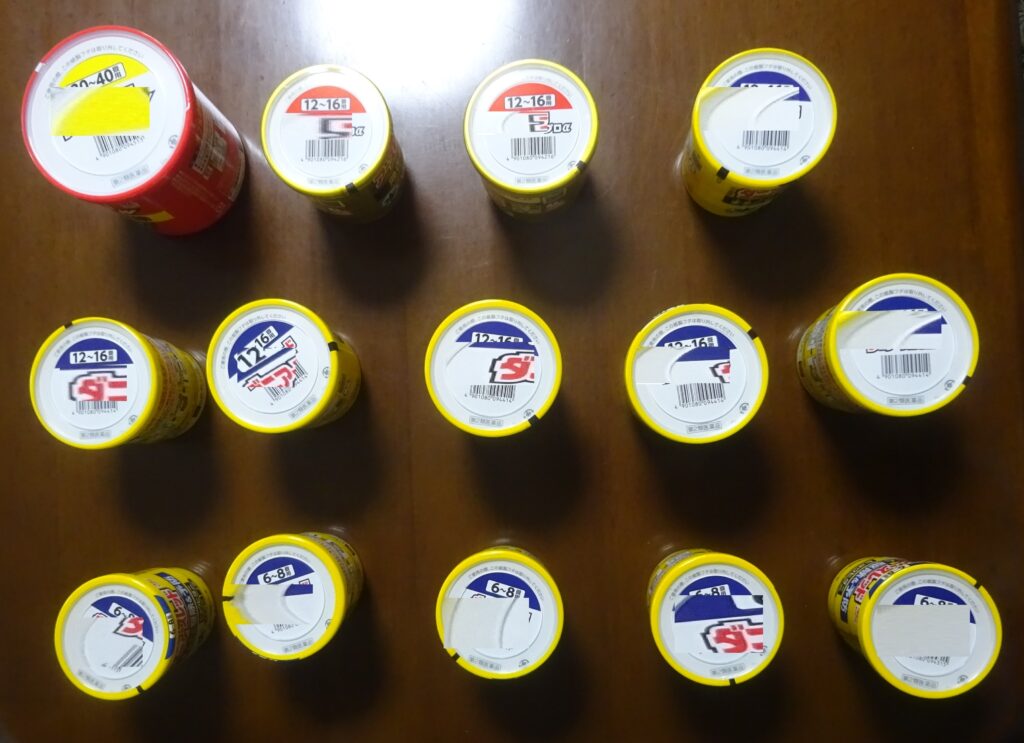 使用後の 燻蒸式の医薬品(最後に、 燻蒸式の医薬品[30~40畳用]を使用して それが 加わりました。すなわち、上記のように 14個であります)