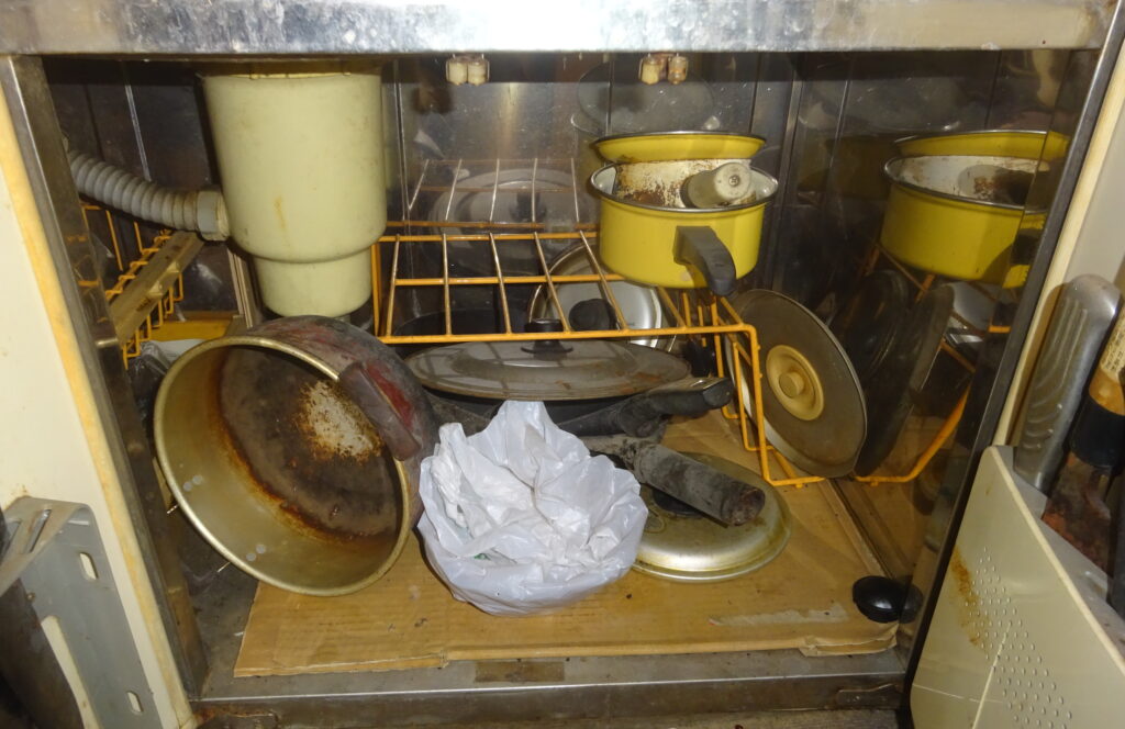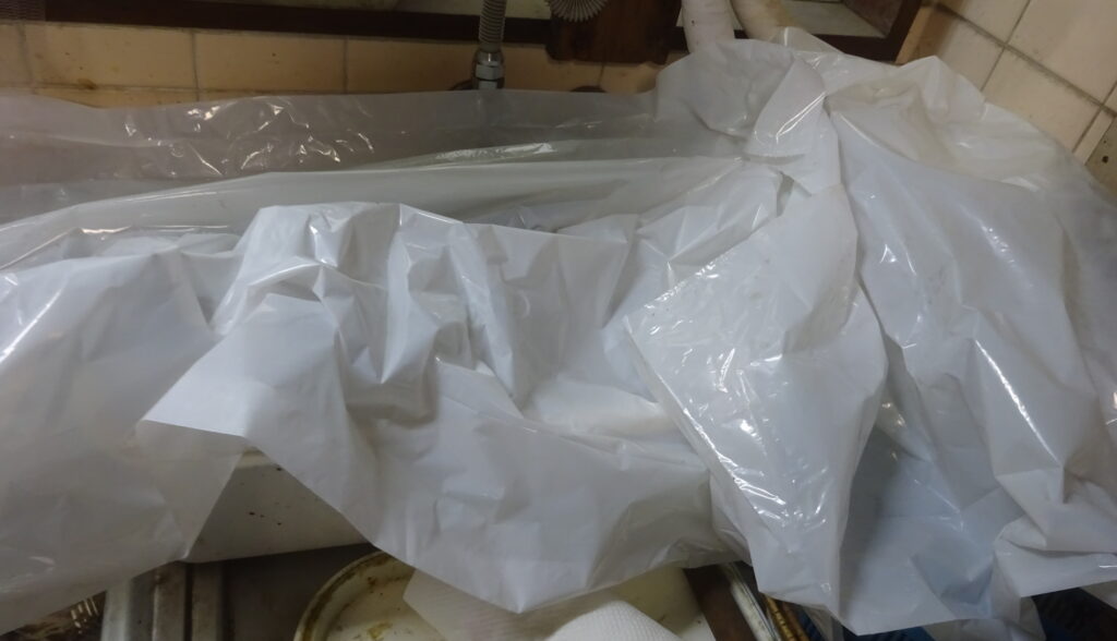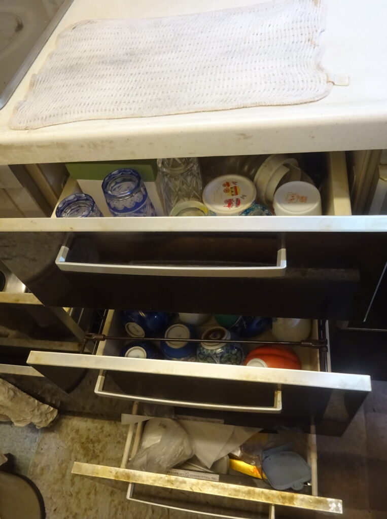 ビニール袋で 覆いをした 食器類(新家・1階)