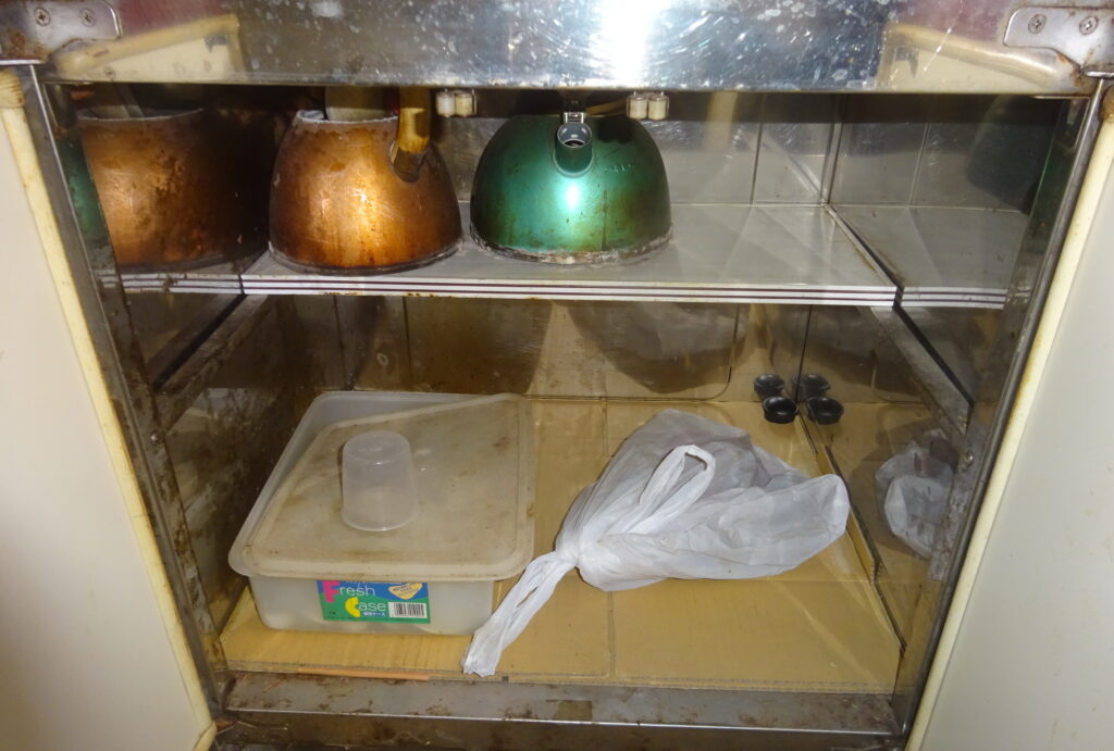 ビニール袋で 覆いをした 食器など(旧家・1階)