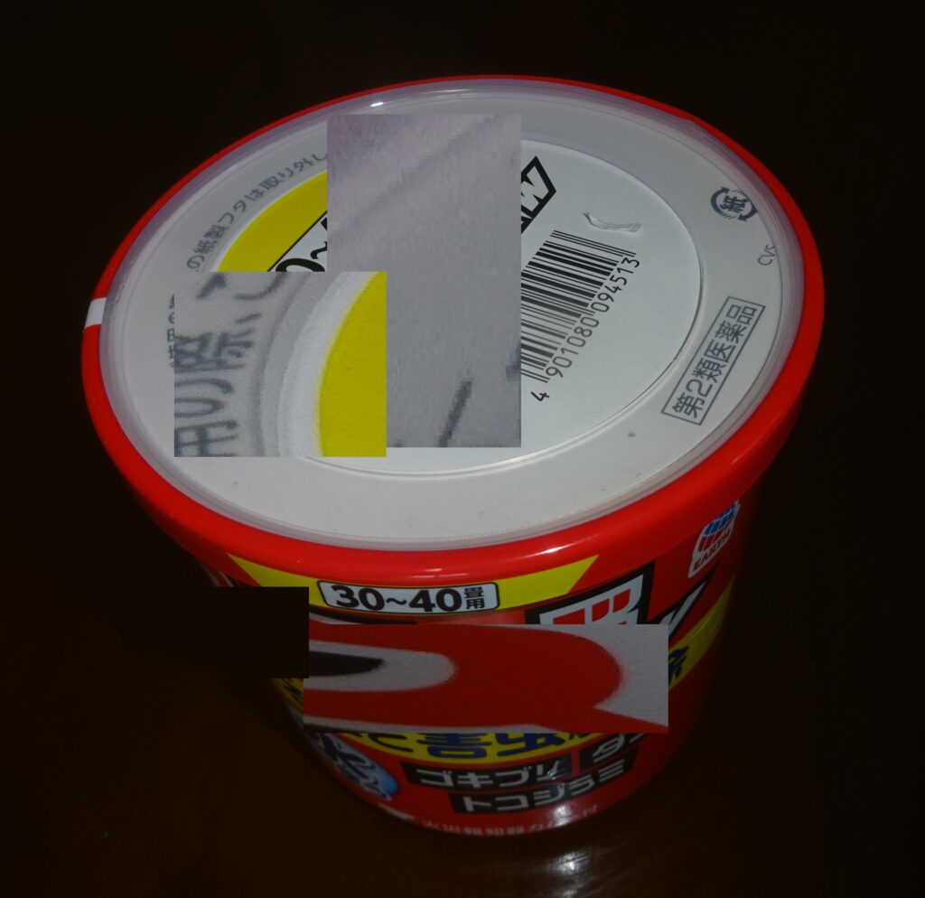 なお、アース レッドのような 燻煙剤は 殺虫剤の微粒子を 空間に拡散するので、それが 付着すると ブラック キャップような食毒剤は 効果を失ってしまいます。従って、順番としては アース レッドの施工が 先であり、それが 終わって 開放・清掃した後 2~3日経ってから ブラック キャップの設置を開始した方が いいとのことであります。因みに、燻蒸式の医薬品に触れた マスクは、処分しました。
