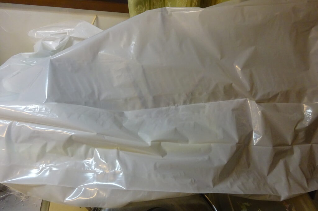 ビニール袋で これから 覆いをする パソコンのキー・ボード そして マウス(旧家・1階)