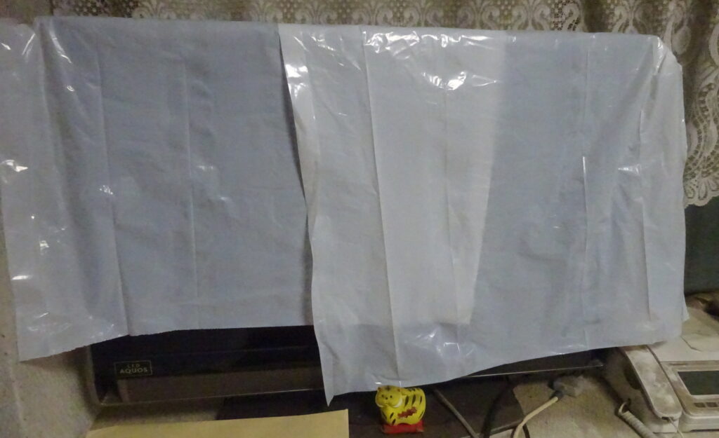 ビニール袋で 覆いをした テレビ(新家・1階)