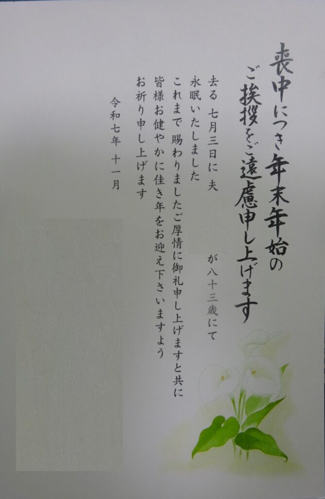 ときに、本日、下の画像のように、男性から 年賀状欠礼の葉書が届きました。