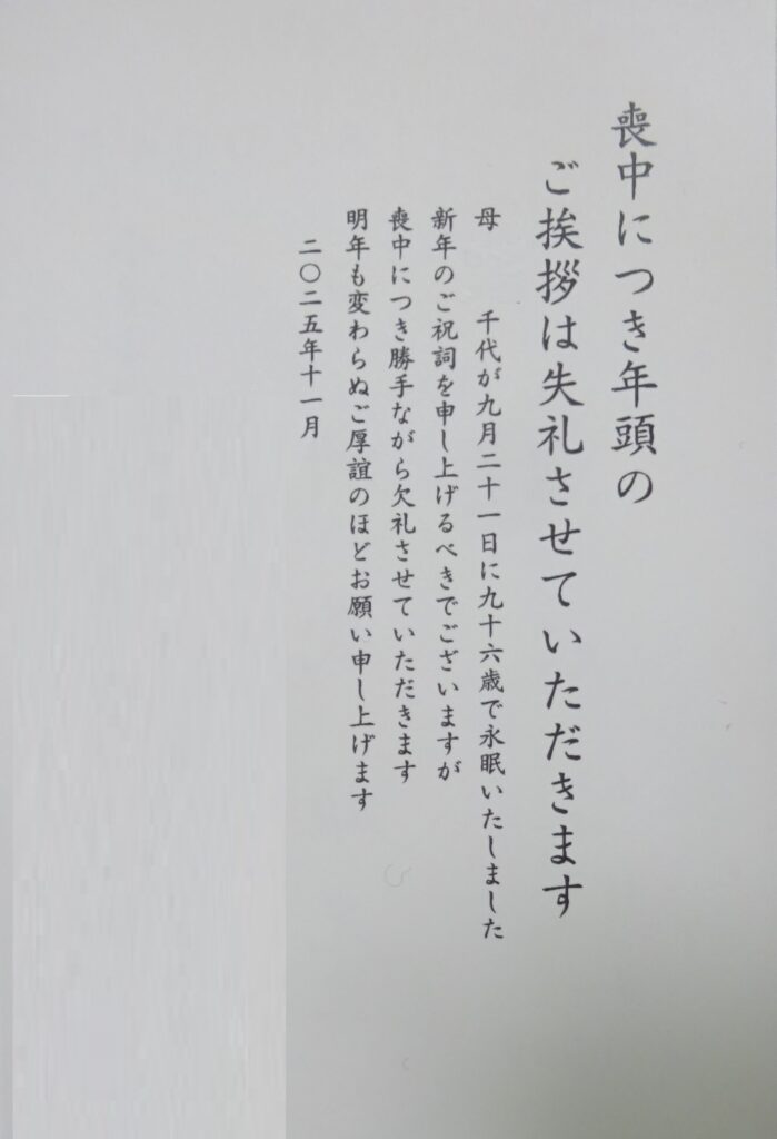 ならびに、本日、下の画像のように、男性後輩から 年賀状欠礼の葉書が届きました。