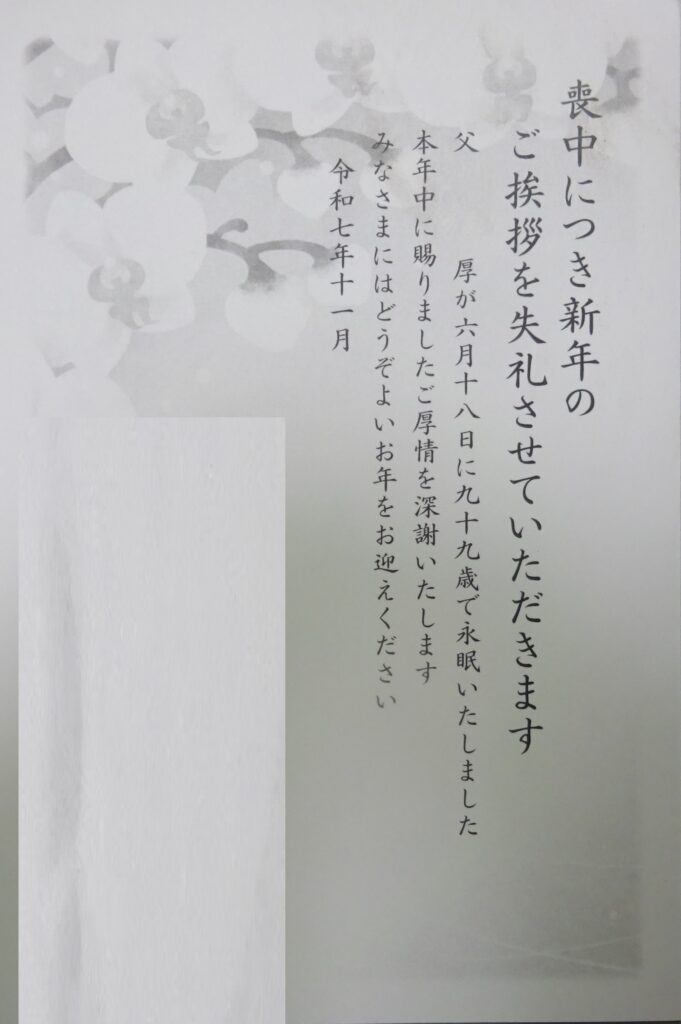 ときに、本日、下の画像のように、男性から 年賀状欠礼の葉書はがきが届きました。