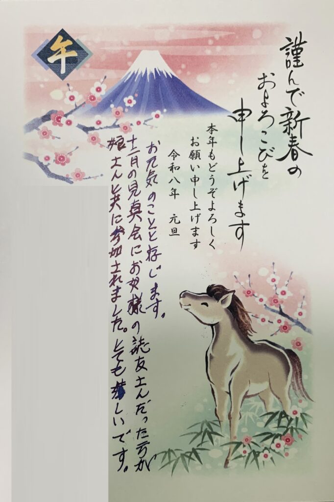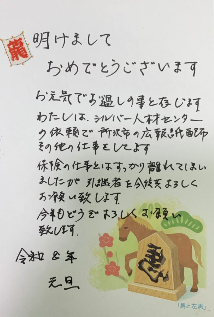 また、昨年の年賀状では 【来年からの年賀状を終わらせてもらいます。】とのことでありましたので、当然のこと乍ら 年賀状を送ることは控えました。ところが、今年 年賀状が来ましたので、慌てて 返信の年賀状を送りました。