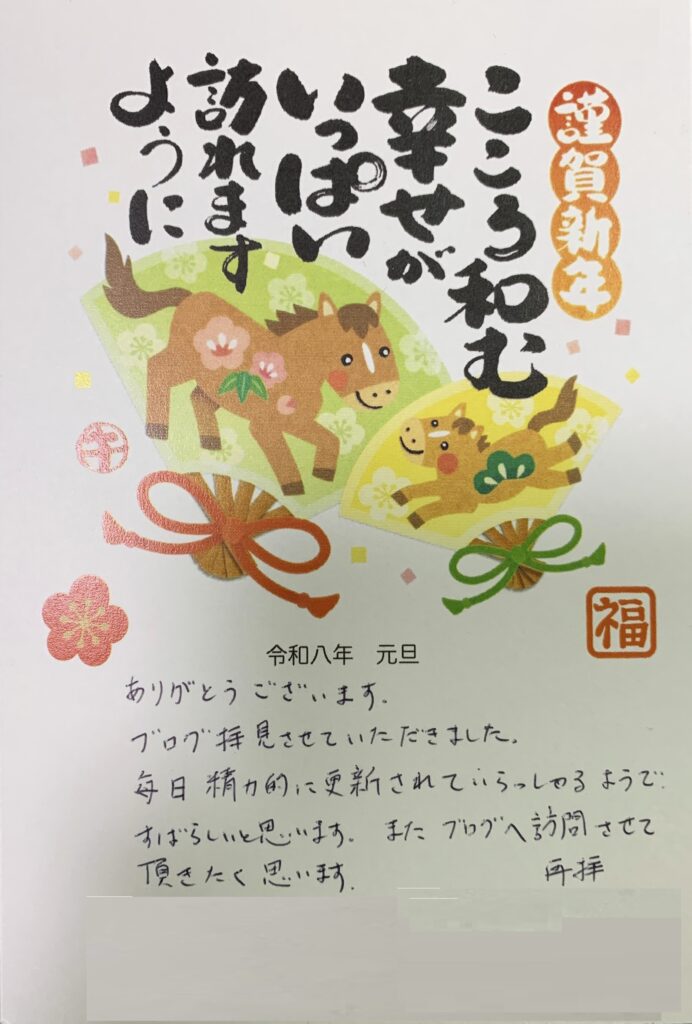 『(前略)一昨日 すなわち 1月1日(木)の【年賀状のこと・続報18(令和8年用)】のブログの上段に、