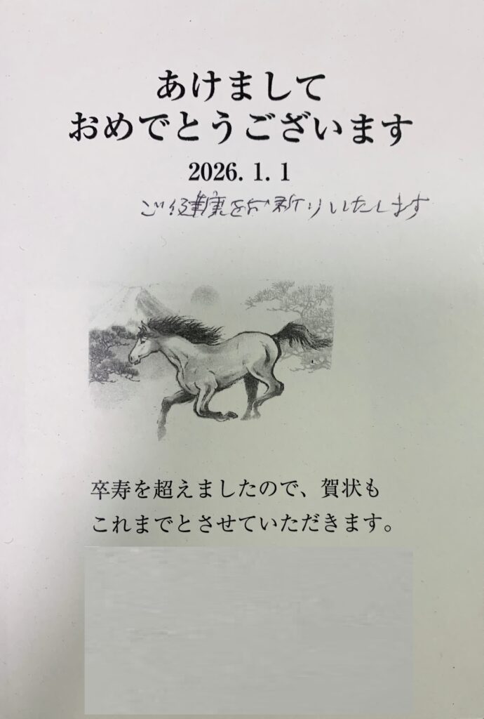「(前略)一昨日 すなわち 1月6日(火) の『年賀状のこと・続報21(令和8年用)』のブログの下段に、