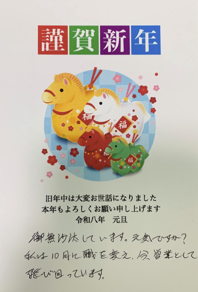 しかして、本日 すなわち 1月9日に 届きました 年賀状であります。因みに、去る 昨年の11月25日(火) の「製本・委託・続報29」のブログに記させていただきました 会社であります。